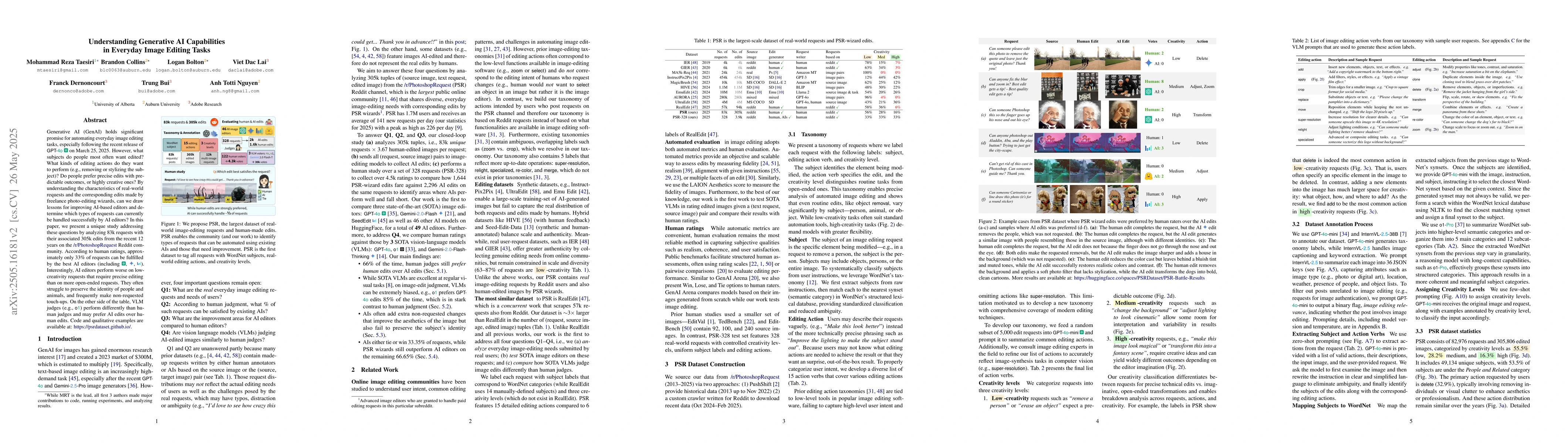 A study analyzing 83k Reddit requests found that AI editors perform well on open-ended tasks but struggle with precise editing of people and animals. Only 33% of requests can be fulfilled by the best AI editors, highlighting limitations in current capabilities.