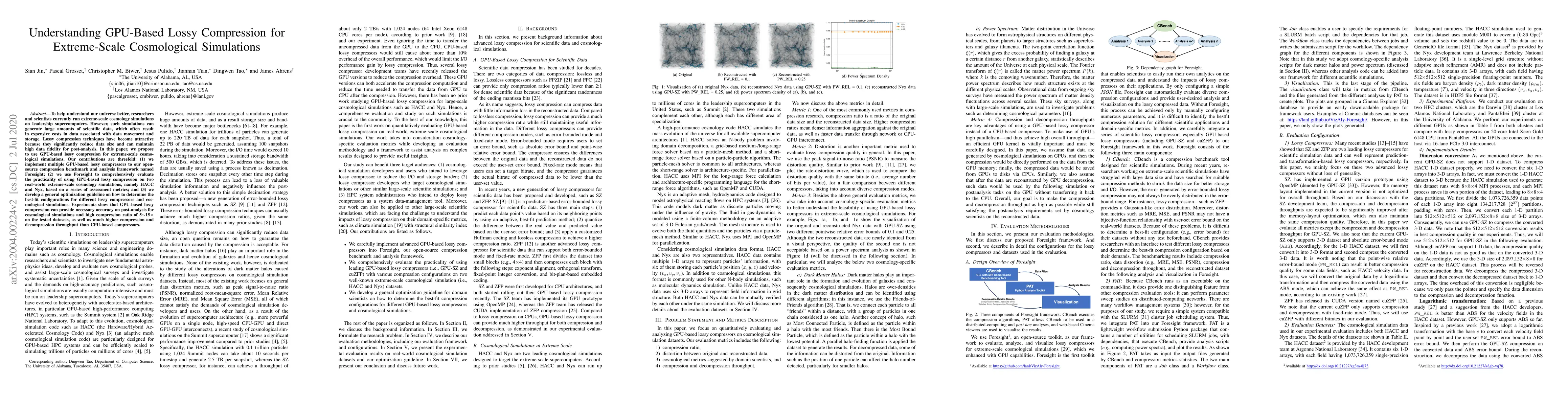 The paper proposes GPU-based lossy compression for extreme-scale cosmological simulations, utilizing an open-source framework called Foresight. This framework benchmarks multiple GPU-based lossy compressors and evaluates their practicality on real-world simulations HACC and Nyx using various assessment metrics.