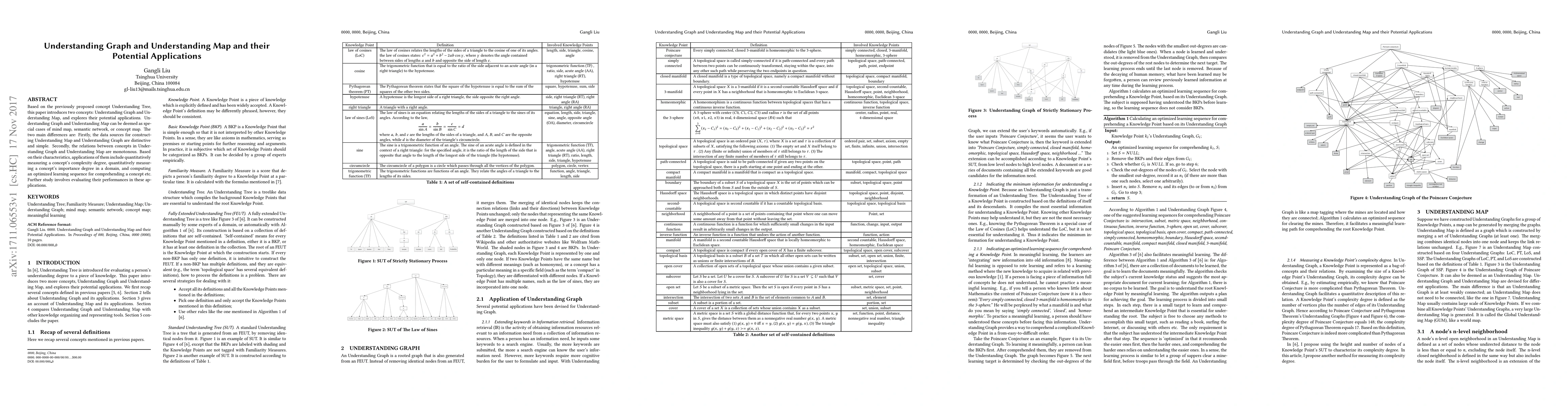This paper introduces Understanding Graph and Understanding Map, extending the concept of Understanding Tree, and explores their potential applications. These constructs, which are special cases of mind maps, can measure concept complexity and importance, and compute optimized learning sequences, with further evaluation of their performance in these applications.