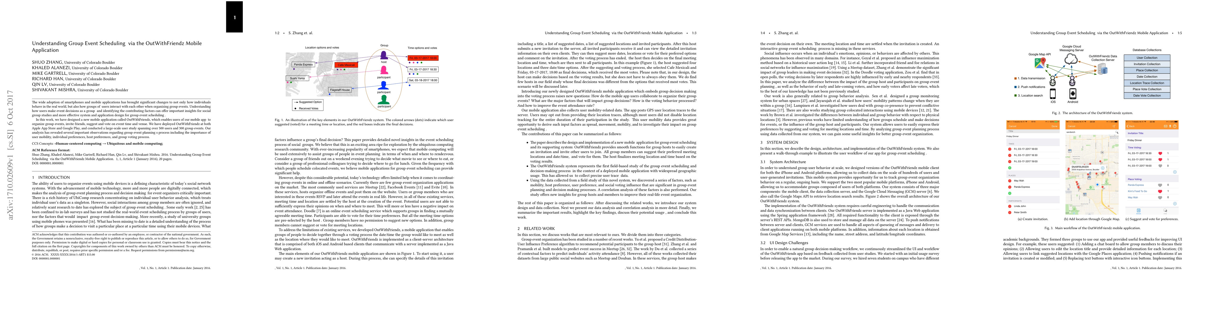 The wide adoption of smartphones and mobile applications has brought significant changes to not only how individuals behave in the real world, but also how groups of users interact with each other when organizing group events. Understanding how users make event decisions as a group and identifying the contributing factors can offer important insights for social group studies and more effective system and application design for group event scheduling. In this work, we have designed a new mobile application called OutWithFriendz, which enables users of our mobile app to organize group events, invite friends, suggest and vote on event time and venue. We have deployed OutWithFriendz at both Apple App Store and Google Play, and conducted a large-scale user study spanning over 500 users and 300 group events. Our analysis has revealed several important observations regarding group event planning process including the importance of user mobility, individual preferences, host preferences, and group voting process.