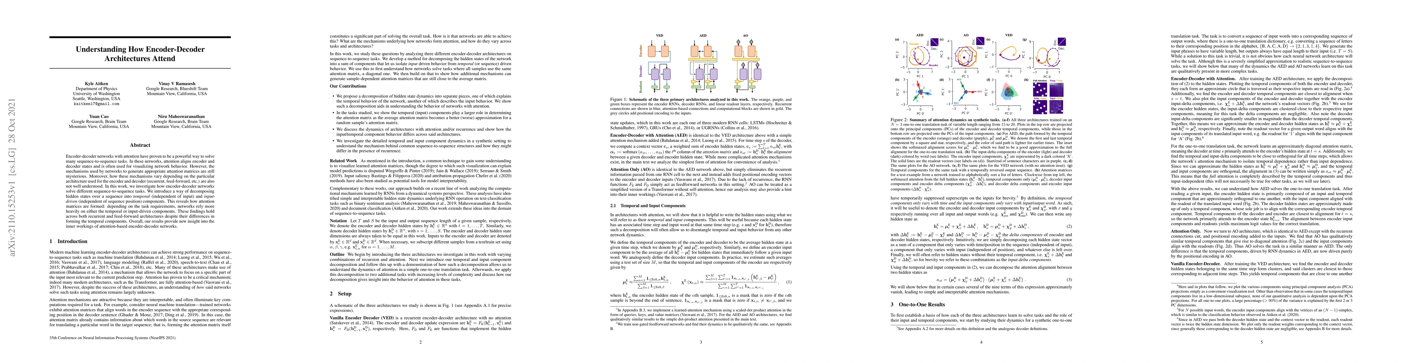 This paper explores the mechanisms behind attention in encoder-decoder networks, revealing that networks rely on temporal or input-driven components to form attention matrices, depending on the task. The findings apply across various architectures, offering new insights into how these networks operate.