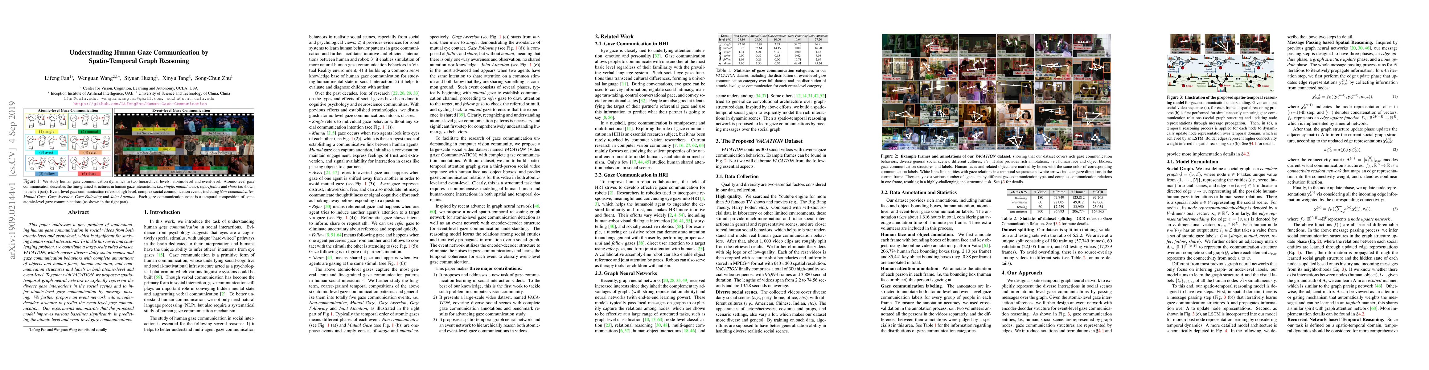 This paper introduces a new dataset, VACATION, for studying human gaze communication in social videos, and proposes a spatio-temporal graph neural network to model gaze interactions. The model significantly outperforms baselines in predicting both atomic-level and event-level gaze communication.