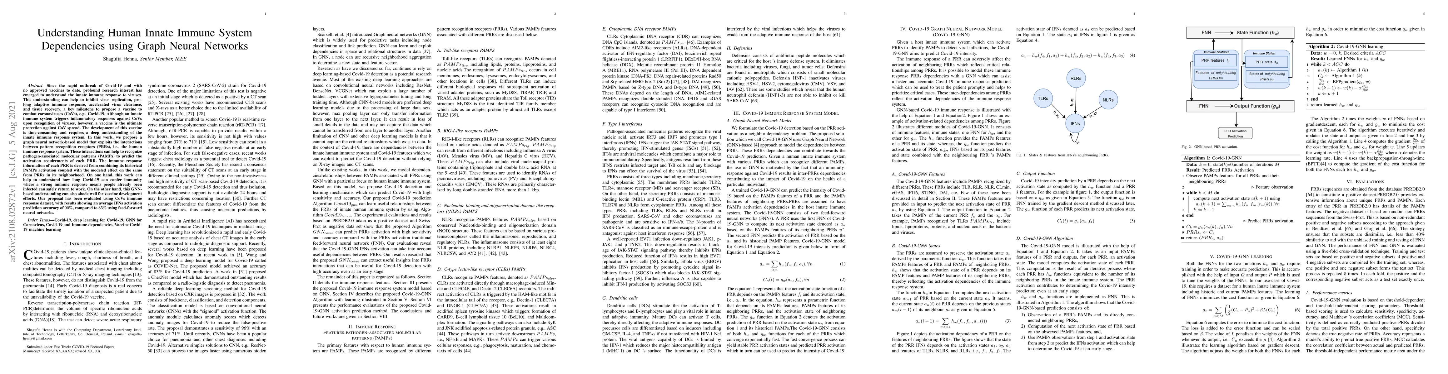 Since the rapid outbreak of Covid-19 and with no approved vaccines to date, profound research interest has emerged to understand the innate immune response to viruses. This understanding can help to inhibit virus replication, prolong adaptive immune response, accelerated virus clearance, and tissue recovery, a key milestone to propose a vaccine to combat coronaviruses (CoVs), e.g., Covid-19. Although an innate immune system triggers inflammatory responses against CoVs upon recognition of viruses, however, a vaccine is the ultimate protection against CoV spread. The development of this vaccine is time-consuming and requires a deep understanding of the innate immune response system. In this work, we propose a graph neural network-based model that exploits the interactions between pattern recognition receptors (PRRs), i.e., the human immune response system. These interactions can help to recognize pathogen-associated molecular patterns (PAMPs) to predict the activation requirements of each PRR. The immune response information of each PRR is derived from combining its historical PAMPs activation coupled with the modeled effect on the same from PRRs in its neighborhood. On one hand, this work can help to understand how long Covid-19 can confer immunity where a strong immune response means people already been infected can safely return to work. On the other hand, this GNN-based understanding can also abode well for vaccine development efforts. Our proposal has been evaluated using CoVs immune response dataset, with results showing an average IFNs activation prediction accuracy of 90%, compared to 85% using feed-forward neural networks.
