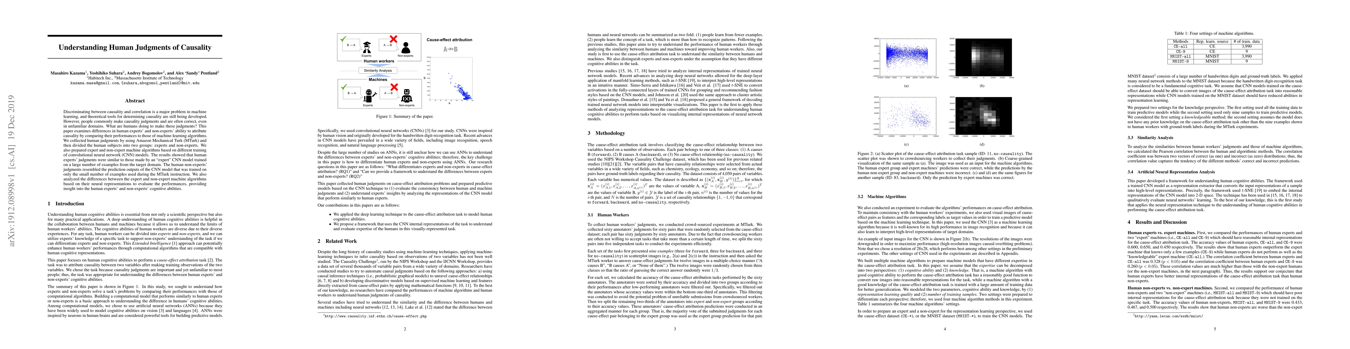 This research investigates how human experts and non-experts make judgments about causality compared to machine-learning algorithms. The study found that human experts' causal judgments align closely with those of a well-trained CNN model, while non-experts' judgments resemble a less-trained model, highlighting the nuanced differences in human cognitive abilities in causal reasoning. For detailed insights, refer to the original paper.