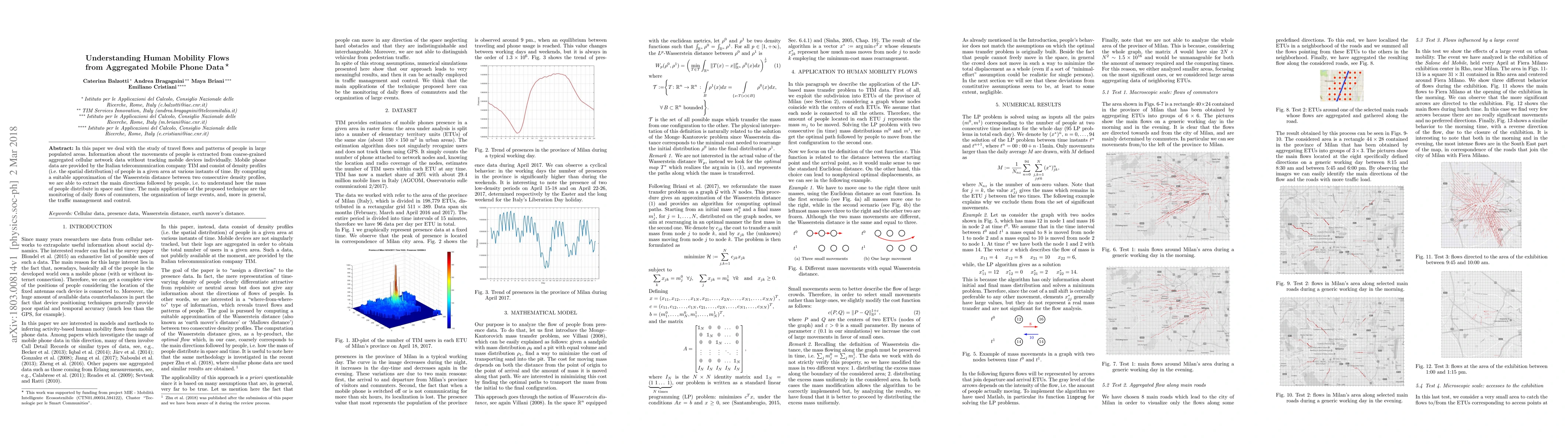 The paper introduces a method to analyze human mobility flows using the Monge-Kantorovich mass transfer problem and Wasserstein distance, applied to aggregated mobile phone data.