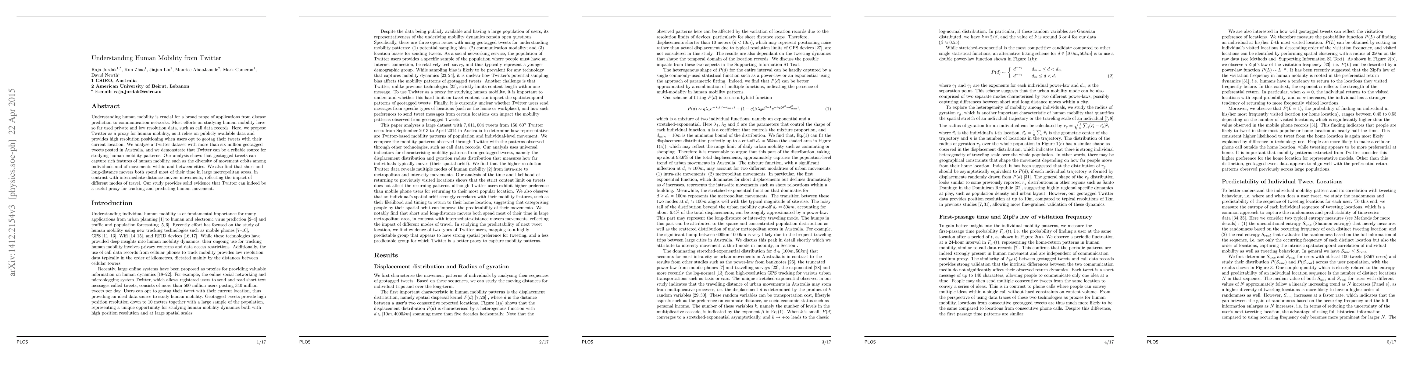 This paper proposes Twitter as a high-resolution proxy for studying human mobility, analyzing over six million geotagged tweets in Australia. The findings show that Twitter data can capture diverse human mobility patterns, including movement orbits and the impact of different travel modes, suggesting its utility for tracking and predicting human movement.
