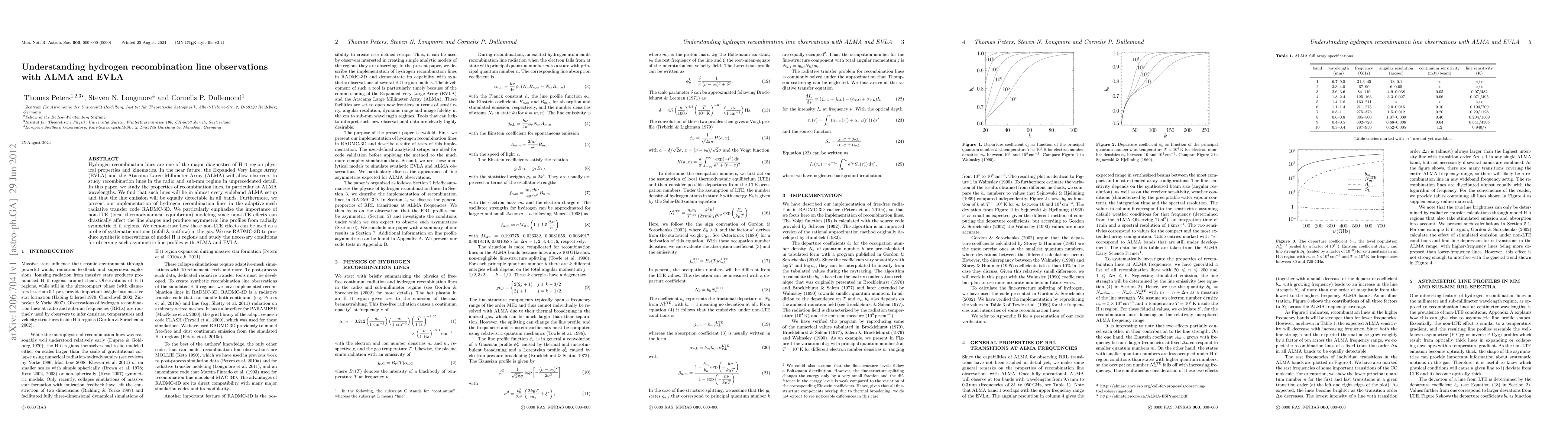 This paper explores the detection of hydrogen recombination lines using ALMA and EVLA, highlighting their significance in studying H II regions. It emphasizes the importance of non-LTE modeling to accurately interpret line shapes and detect asymmetric profiles indicative of gas motions, using RADMC-3D for synthetic observations.