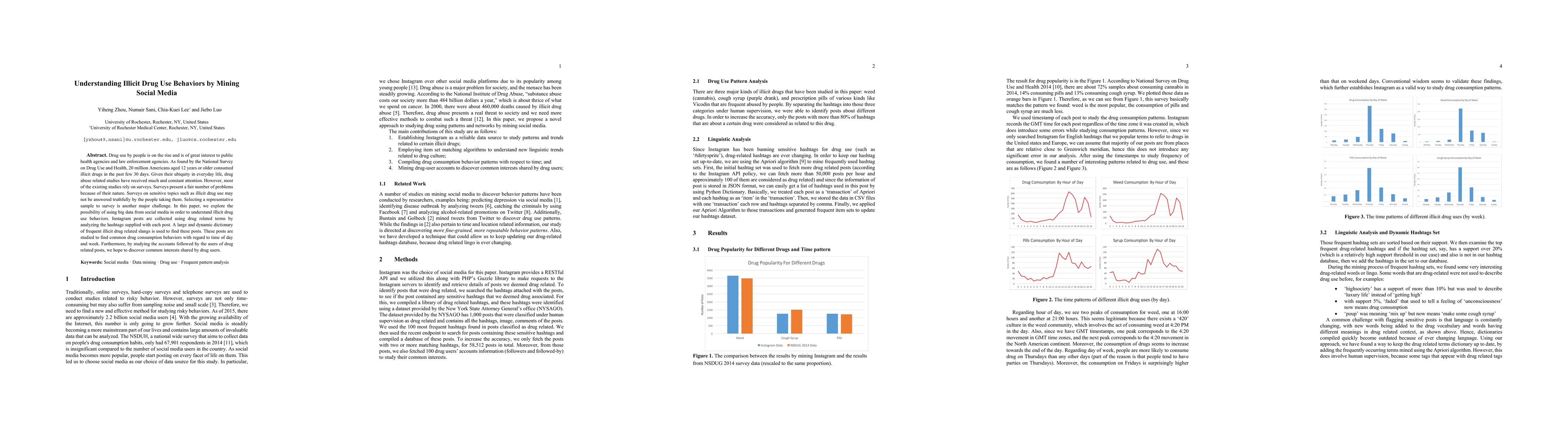 This paper investigates illicit drug use behaviors by analyzing social media data, specifically Instagram posts tagged with drug-related terms. It aims to overcome survey limitations by identifying common drug consumption patterns and shared interests among users through big data analysis.