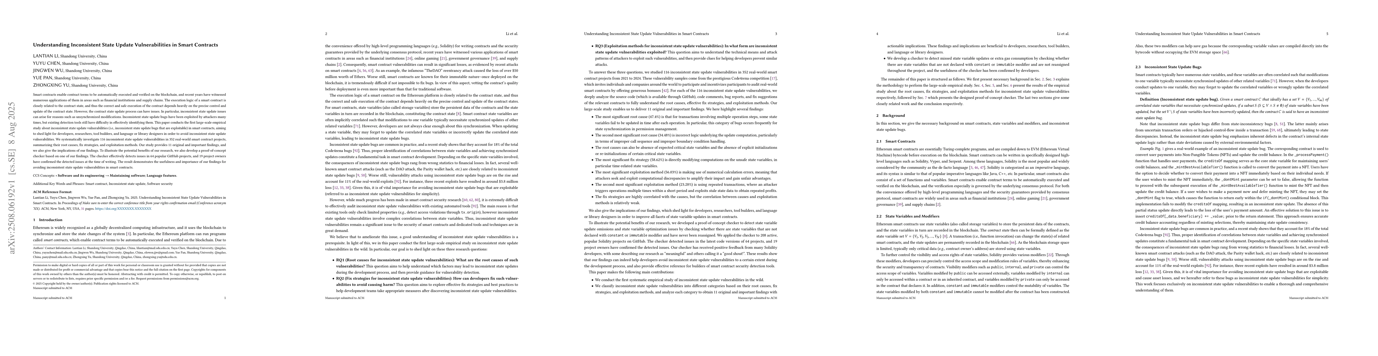 Smart contracts enable contract terms to be automatically executed and verified on the blockchain, and recent years have witnessed numerous applications of them in areas such as financial institutions and supply chains. The execution logic of a smart contract is closely related to the contract state, and thus the correct and safe execution of the contract depends heavily on the precise control and update of the contract state. However, the contract state update process can have issues. In particular, inconsistent state update issues can arise for reasons such as unsynchronized modifications. Inconsistent state update bugs have been exploited by attackers many times, but existing detection tools still have difficulty in effectively identifying them. This paper conducts the first large-scale empirical study about inconsistent state update vulnerabilities (that is, inconsistent state update bugs that are exploitable) in smart contracts, aiming to shed light for developers, researchers, tool builders, and language or library designers in order to avoid inconsistent state update vulnerabilities. We systematically investigate 116 inconsistent state update vulnerabilities in 352 real-world smart contract projects, summarizing their root causes, fix strategies, and exploitation methods. Our study provides 11 original and important findings, and we also give the implications of our findings. To illustrate the potential benefits of our research, we also develop a proof-of-concept checker based on one of our findings. The checker effectively detects issues in 64 popular GitHub projects, and 19 project owners have confirmed the detected issues at the time of writing. The result demonstrates the usefulness and importance of our findings for avoiding inconsistent state update vulnerabilities in smart contracts.