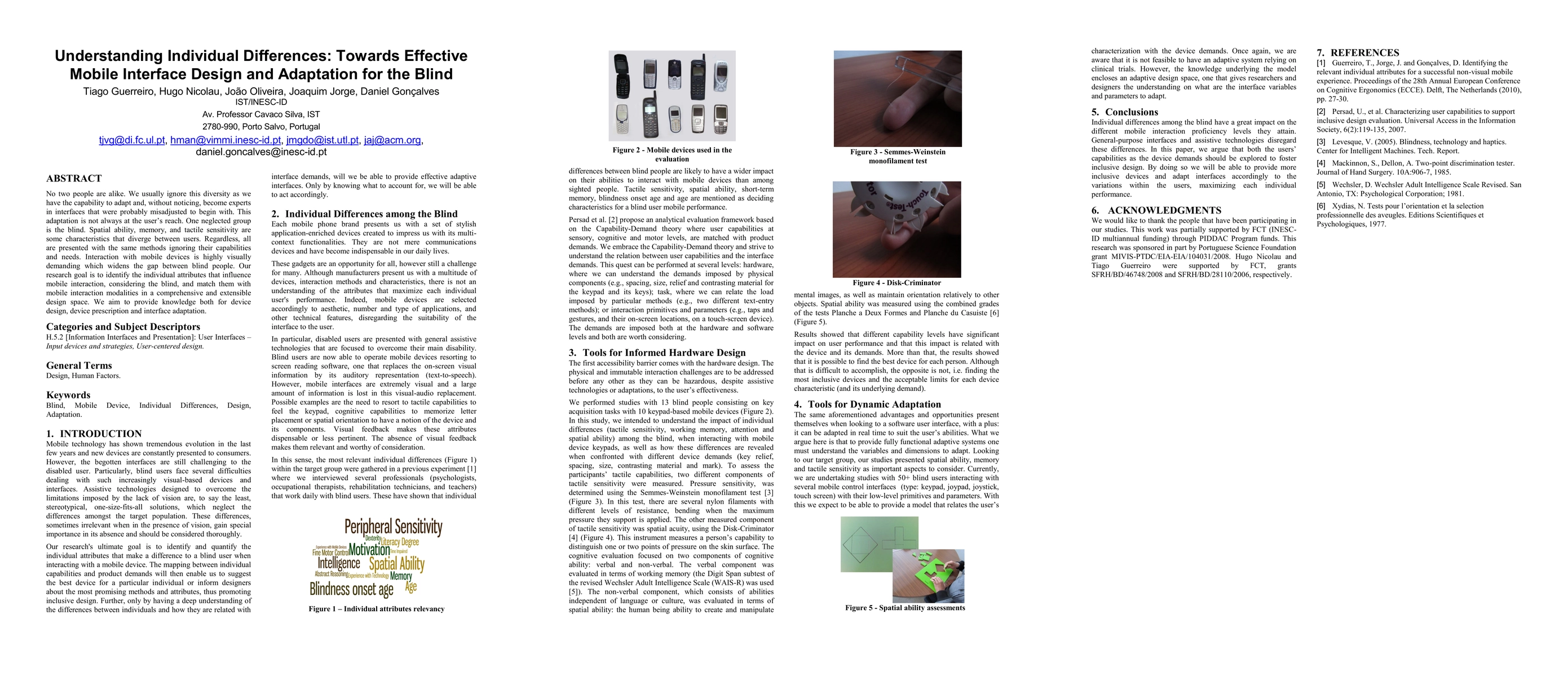 No two people are alike. We usually ignore this diversity as we have the capability to adapt and, without noticing, become experts in interfaces that were probably misadjusted to begin with. This adaptation is not always at the user's reach. One neglected group is the blind. Spatial ability, memory, and tactile sensitivity are some characteristics that diverge between users. Regardless, all are presented with the same methods ignoring their capabilities and needs. Interaction with mobile devices is highly visually demanding which widens the gap between blind people. Our research goal is to identify the individual attributes that influence mobile interaction, considering the blind, and match them with mobile interaction modalities in a comprehensive and extensible design space. We aim to provide knowledge both for device design, device prescription and interface adaptation.
