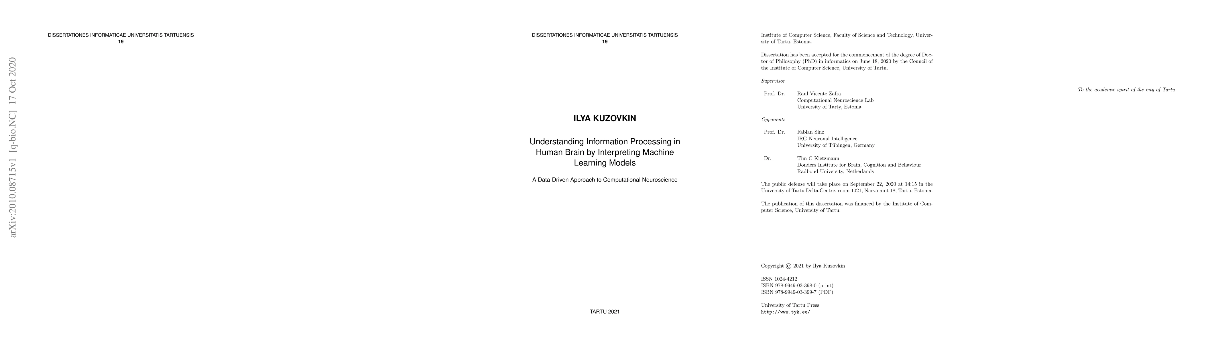 The thesis explores the role machine learning methods play in creating intuitive computational models of neural processing. Combined with interpretability techniques, machine learning could replace human modeler and shift the focus of human effort to extracting the knowledge from the ready-made models and articulating that knowledge into intuitive descroptions of reality. This perspective makes the case in favor of the larger role that exploratory and data-driven approach to computational neuroscience could play while coexisting alongside the traditional hypothesis-driven approach. We exemplify the proposed approach in the context of the knowledge representation taxonomy with three research projects that employ interpretability techniques on top of machine learning methods at three different levels of neural organization. The first study (Chapter 3) explores feature importance analysis of a random forest decoder trained on intracerebral recordings from 100 human subjects to identify spectrotemporal signatures that characterize local neural activity during the task of visual categorization. The second study (Chapter 4) employs representation similarity analysis to compare the neural responses of the areas along the ventral stream with the activations of the layers of a deep convolutional neural network. The third study (Chapter 5) proposes a method that allows test subjects to visually explore the state representation of their neural signal in real time. This is achieved by using a topology-preserving dimensionality reduction technique that allows to transform the neural data from the multidimensional representation used by the computer into a two-dimensional representation a human can grasp. The approach, the taxonomy, and the examples, present a strong case for the applicability of machine learning methods to automatic knowledge discovery in neuroscience.