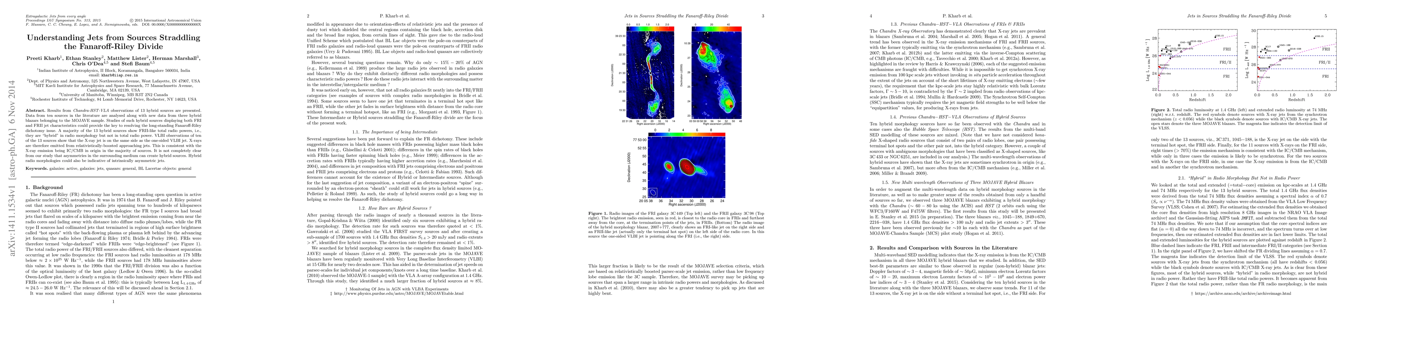 Results from Chandra-HST-VLA observations of 13 hybrid sources are presented. Data from ten sources in the literature are analysed along with new data from three hybrid blazars belonging to the MOJAVE sample. Studies of such hybrid sources displaying both FRI and FRII jet characteristics could provide the key to resolving the long-standing Fanaroff-Riley dichotomy issue. A majority of the 13 hybrid sources show FRII-like total radio powers, i.e., they are "hybrid" in radio morphology but not in total radio power. VLBI observations of ten of the 13 sources show that the X-ray jet is on the same side as the one-sided VLBI jet. X-rays are therefore emitted from relativistically-boosted approaching jets. This is consistent with the X-ray emission being IC/CMB in origin in the majority of sources. It is not completely clear from our study that asymmetries in the surrounding medium can create hybrid sources. Hybrid radio morphologies could also be indicative of intrinsically asymmetric jets.