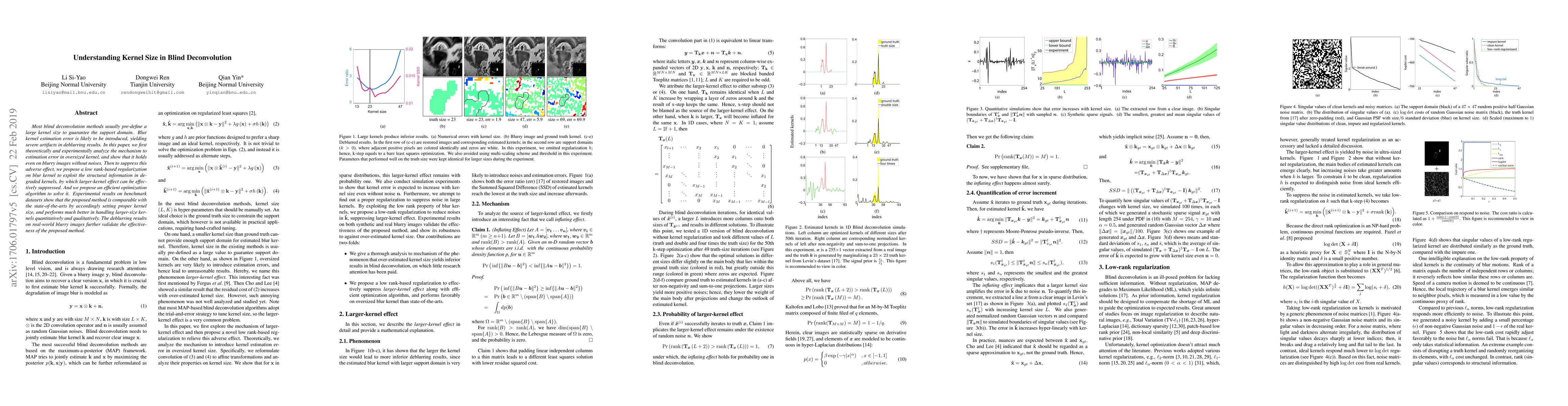 This paper investigates the adverse effects of oversized kernels in blind deconvolution, demonstrating that kernel estimation errors lead to severe artifacts. It proposes a low-rank regularization method to suppress these effects and introduces an efficient optimization algorithm, achieving better performance on benchmark datasets compared to state-of-the-art methods.