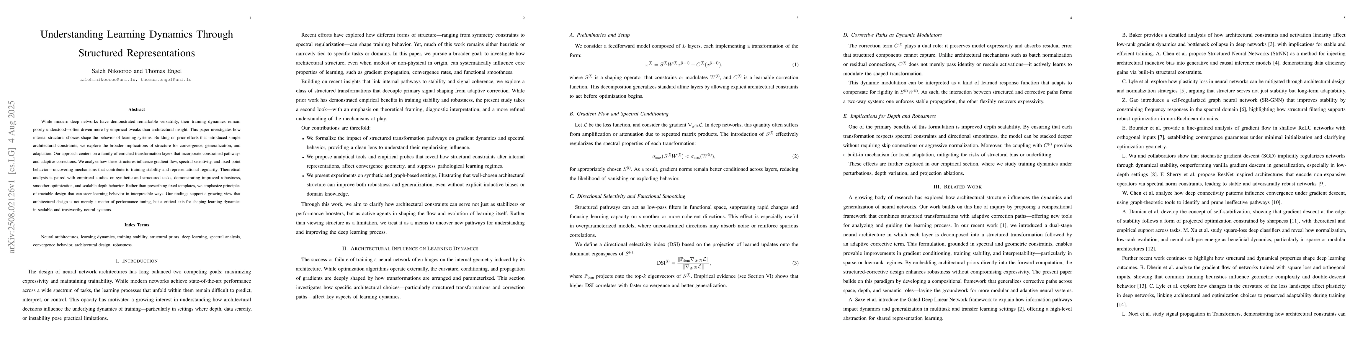 While modern deep networks have demonstrated remarkable versatility, their training dynamics remain poorly understood--often driven more by empirical tweaks than architectural insight. This paper investigates how internal structural choices shape the behavior of learning systems. Building on prior efforts that introduced simple architectural constraints, we explore the broader implications of structure for convergence, generalization, and adaptation. Our approach centers on a family of enriched transformation layers that incorporate constrained pathways and adaptive corrections. We analyze how these structures influence gradient flow, spectral sensitivity, and fixed-point behavior--uncovering mechanisms that contribute to training stability and representational regularity. Theoretical analysis is paired with empirical studies on synthetic and structured tasks, demonstrating improved robustness, smoother optimization, and scalable depth behavior. Rather than prescribing fixed templates, we emphasize principles of tractable design that can steer learning behavior in interpretable ways. Our findings support a growing view that architectural design is not merely a matter of performance tuning, but a critical axis for shaping learning dynamics in scalable and trustworthy neural systems.