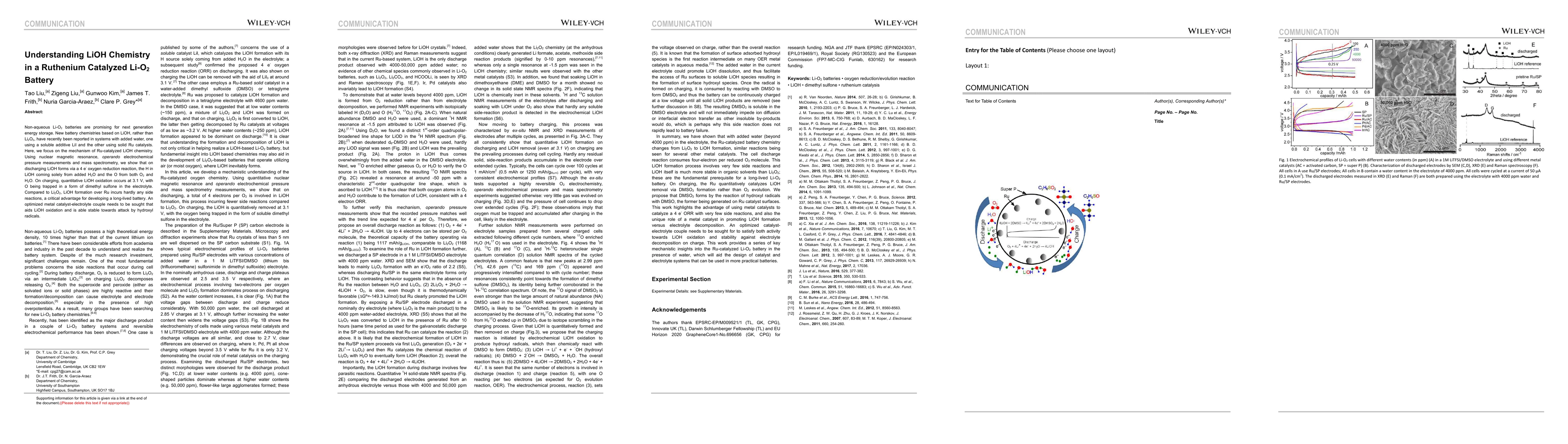 Researchers studied LiOH chemistry in a ruthenium-catalyzed Li-O2 battery, finding that it forms through an oxygen reduction reaction when discharged and can be oxidized on charging with minimal side reactions.
