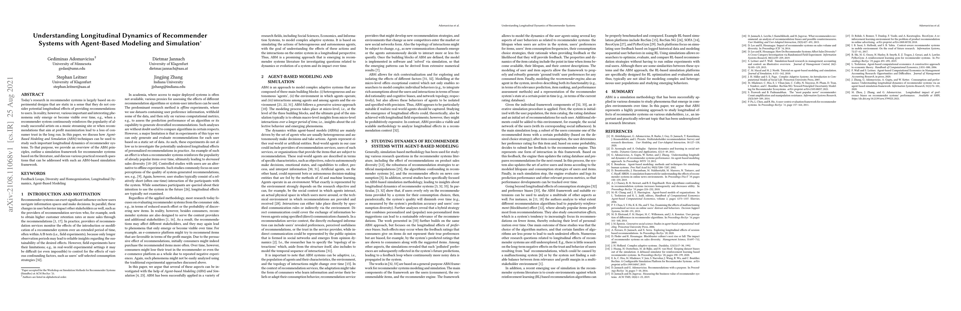 This paper explores the application of Agent-Based Modeling and Simulation (ABM) to study longitudinal dynamics in recommender systems, addressing phenomena that emerge over time, such as the reinforcement of popular artists or the loss of consumer trust. It outlines an ABM-based simulation framework and discusses its potential for investigating these long-term effects.