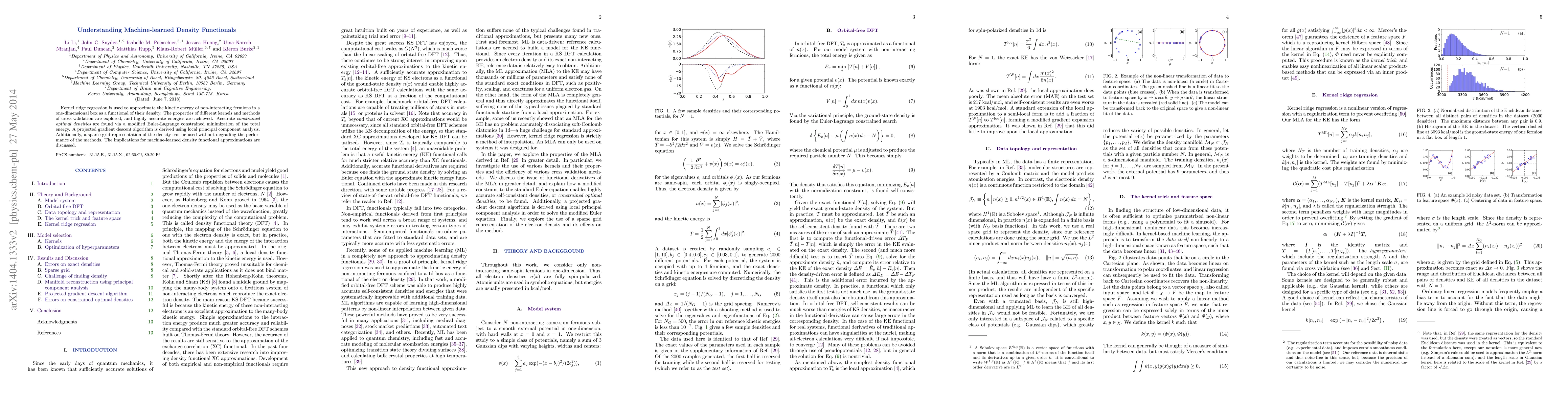 This paper employs kernel ridge regression to approximate the kinetic energy of fermions, exploring various kernels and cross-validation techniques to achieve high accuracy. It also introduces a projected gradient descent algorithm and discusses the implications for machine-learned density functional approximations, including the use of sparse grid representations.