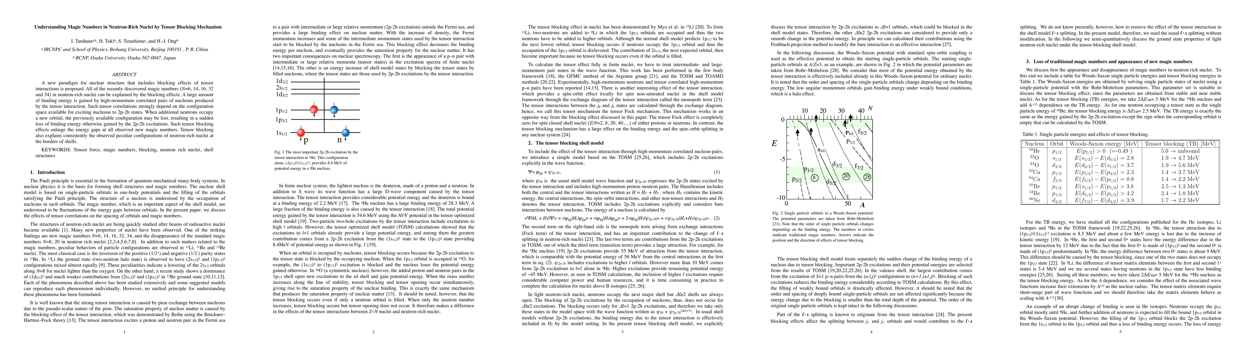 This paper proposes a new nuclear structure paradigm based on tensor blocking effects, explaining recently discovered magic numbers in neutron-rich nuclei (N=6, 14, 16, 32, and 34) through high-momentum correlated pairs of nucleons. The tensor interactions create significant binding energy, which is lost when additional neutrons occupy new orbitals, leading to enlarged energy gaps and peculiar configurations at shell borders.