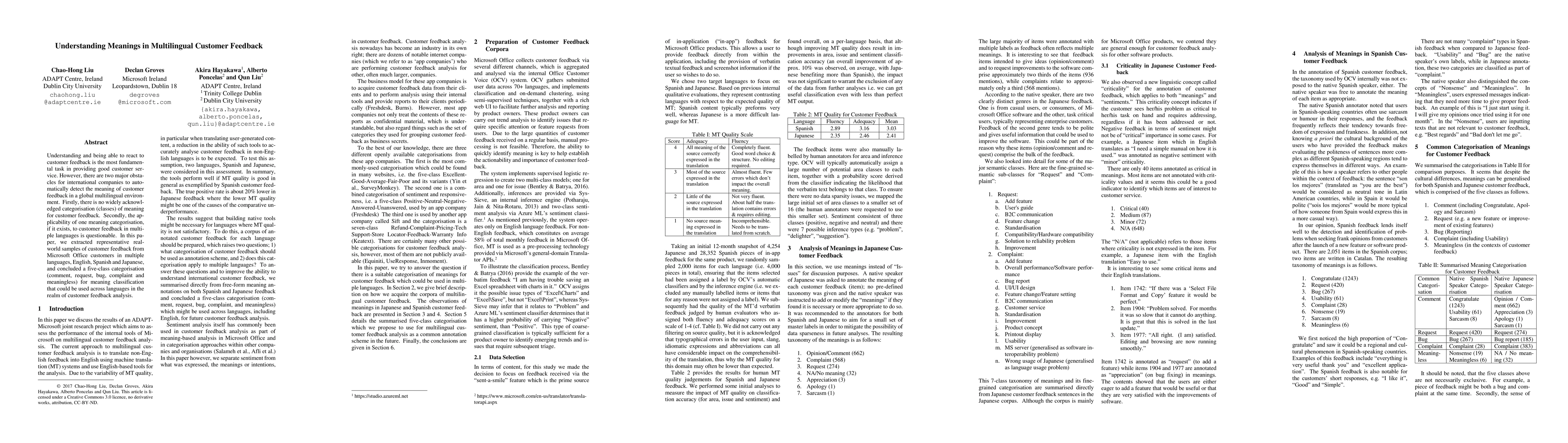 Researchers developed a five-class categorization system for meaning classification of customer feedback in multiple languages, which can help international companies improve their customer service. The study used real-world samples from Microsoft Office customers in English, Spanish, and Japanese to validate the system's applicability across languages.