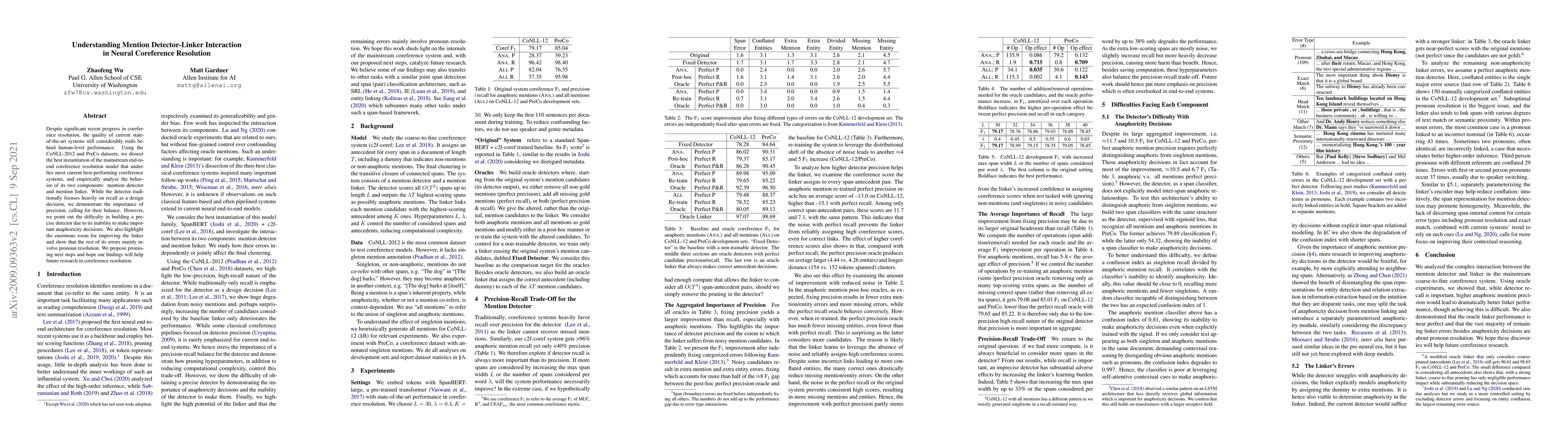 This paper analyzes the interaction between mention detector and mention linker components in neural coreference resolution models. It finds that while detectors focus on recall, balancing precision is crucial, and there is significant room for linker improvement, especially in pronoun resolution, to reach human-level performance.