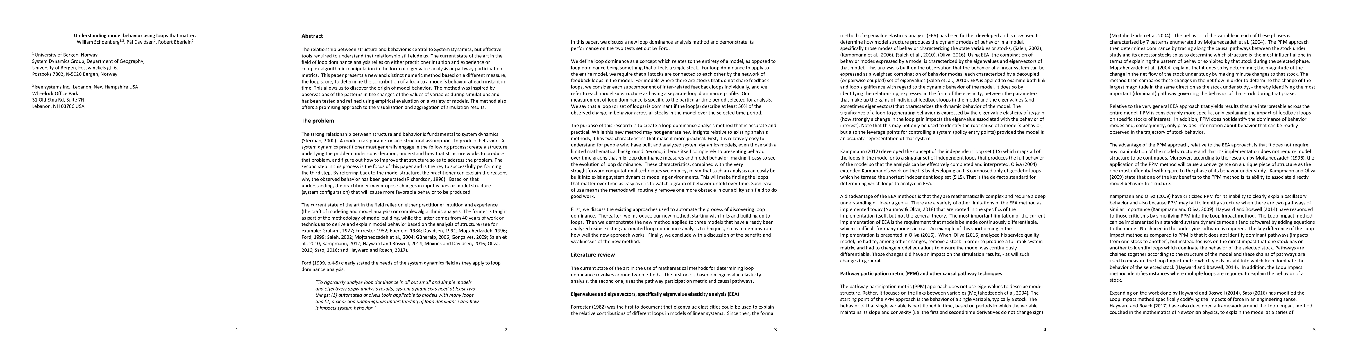 The link between structure and behavior is central to System Dynamics, but effective tools for understanding that relationship still elude us. The current state of the art in the field of loop dominance analysis relies on either practitioner intuition and experience or complex algorithmic manipulation in the form of eigenvalue analysis or pathway participation metrics. This paper presents a new and distinct method to find the 'loops that matter' in generating model behavior. This is a numeric method capable of determining the impact for every loop in a model and identifying which dominate behavior at each point in time. The method was inspired by observations on variable value changes during simulations and has been refined using empirical evaluation on a variety of different models. In addition to explaining behavior, the method shows promise for improving visualization and aggregation of simulation results.