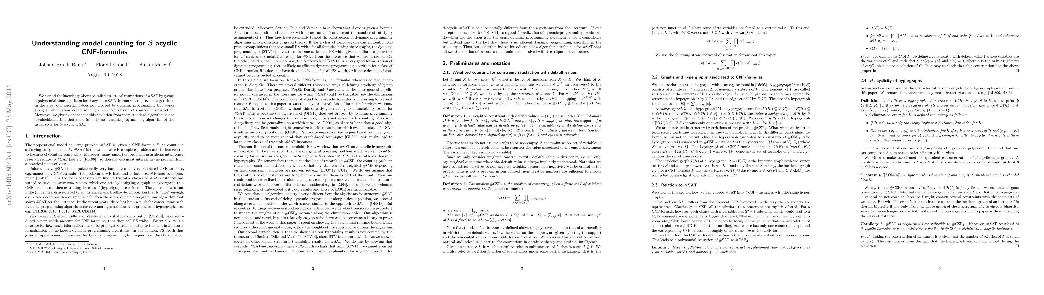 This paper presents a polynomial time algorithm for counting satisfying assignments in $\beta$-acyclic CNF-formulas, utilizing an elimination order instead of dynamic programming, and suggests that such a method may be necessary due to the structural properties of $\beta$-acyclicity.