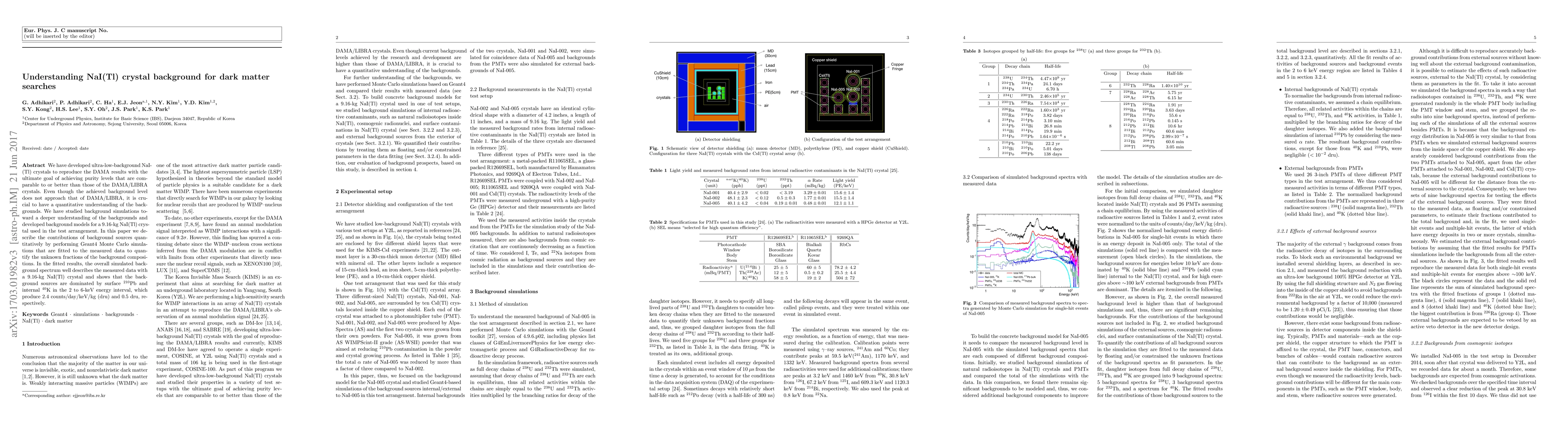 The paper details the development of ultra-low-background NaI(Tl) crystals for dark matter research, focusing on understanding their backgrounds. Using Geant4 Monte Carlo simulations, the study identifies surface $^{210}$Pb and internal $^{40}$K as dominant background sources, contributing 2.4 and 0.5 counts/day/keV/kg, respectively, in the 2-6 keV energy range.
