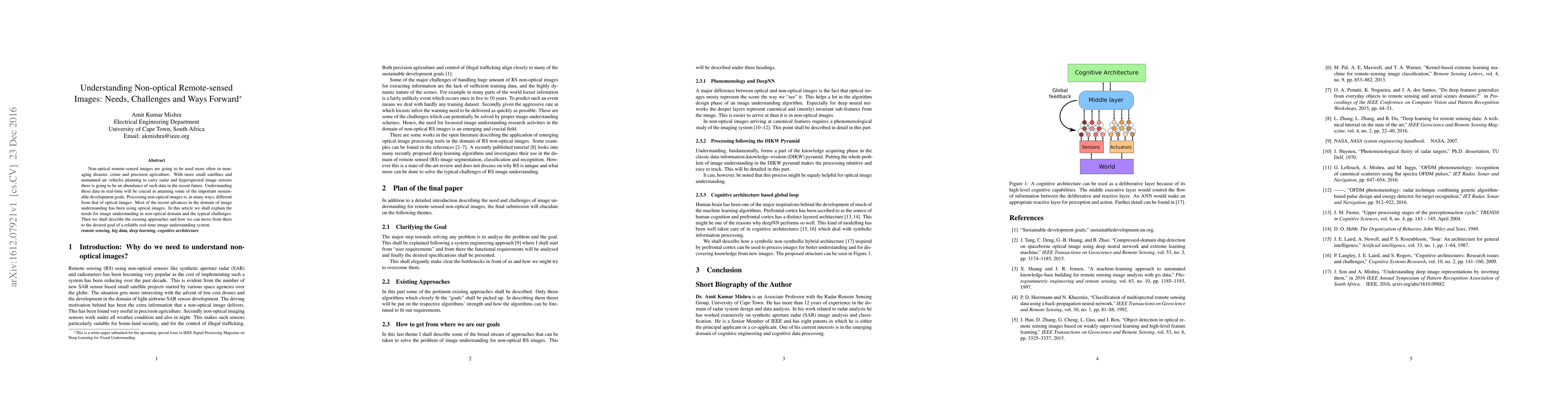 Non-optical remote-sensed images will become increasingly important for disaster management, crime, and precision agriculture. A reliable real-time image understanding system is needed to process these data, which poses unique challenges compared to optical images.