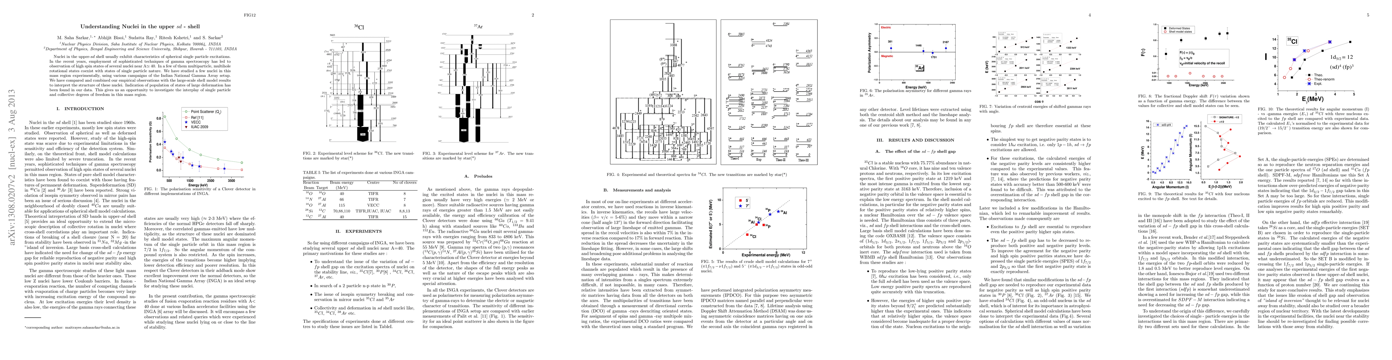 Nuclei in the upper-$sd$ shell usually exhibit characteristics of spherical single particle excitations. In the recent years, employment of sophisticated techniques of gamma spectroscopy has led to observation of high spin states of several nuclei near A$\simeq$ 40. In a few of them multiparticle, multihole rotational states coexist with states of single particle nature. We have studied a few nuclei in this mass region experimentally, using various campaigns of the Indian National Gamma Array setup. We have compared and combined our empirical observations with the large-scale shell model results to interpret the structure of these nuclei. Indication of population of states of large deformation has been found in our data. This gives us an opportunity to investigate the interplay of single particle and collective degrees of freedom in this mass region.