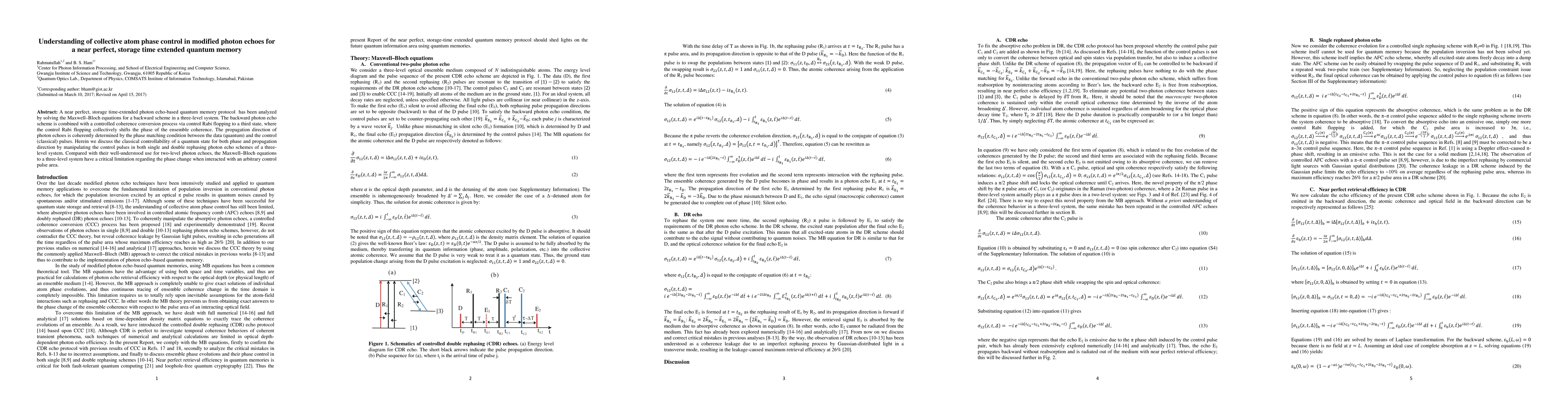 This paper explores a photon echo-based quantum memory protocol using a three-level system, where collective atom phase control is achieved via control Rabi flopping. The study investigates the classical manipulation of quantum states for phase and propagation direction through modified photon echo schemes.