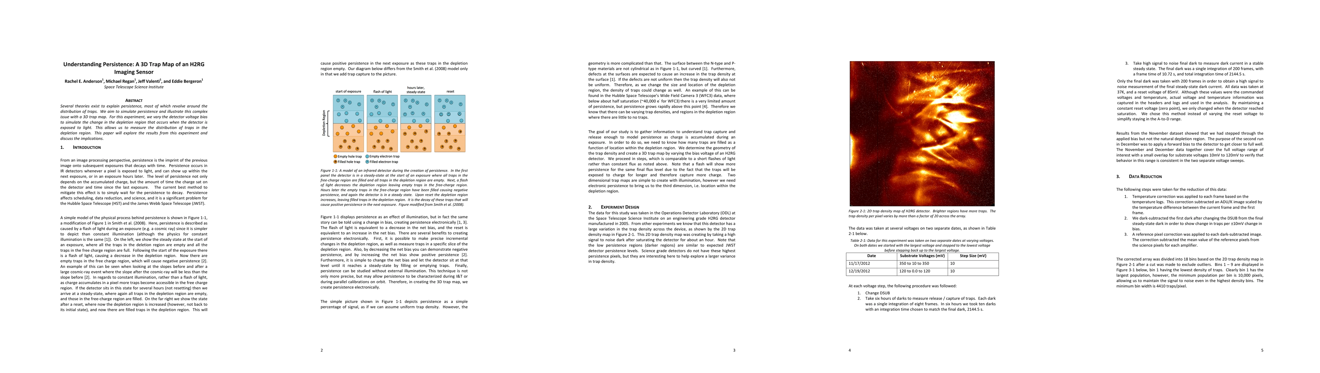 Several theories exist to explain persistence, most of which revolve around the distribution of traps. We aim to simulate persistence and illustrate this complex issue with a 3D trap map. For this experiment, we vary the detector voltage bias to simulate the change in the depletion region that occurs when the detector is exposed to light. This allows us to measure the distribution of traps in the depletion region. This paper will explore the results from this experiment and discuss the implications.