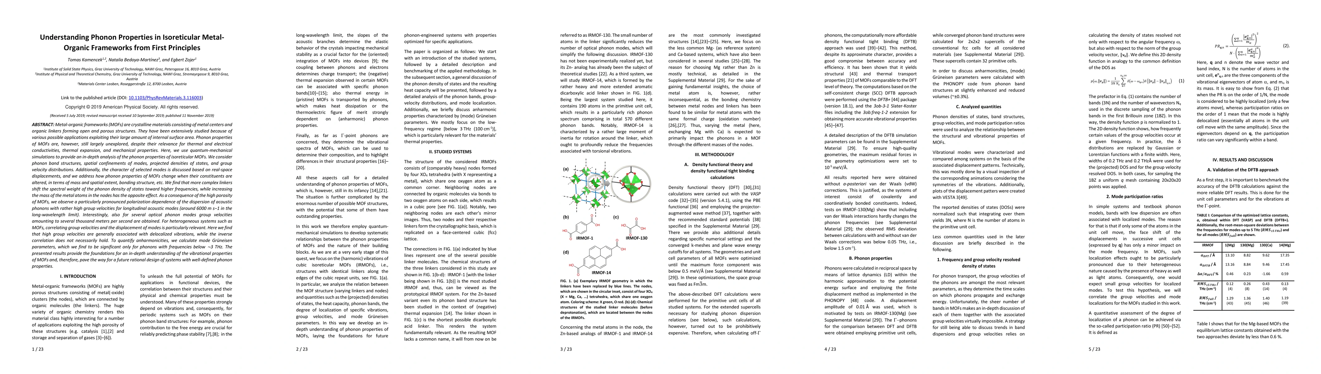 Researchers used quantum-mechanical simulations to study phonon properties in isoreticular metal-organic frameworks (MOFs), finding that more complex linkers shift spectral weight towards higher frequencies and certain optical phonon modes have high group velocities.