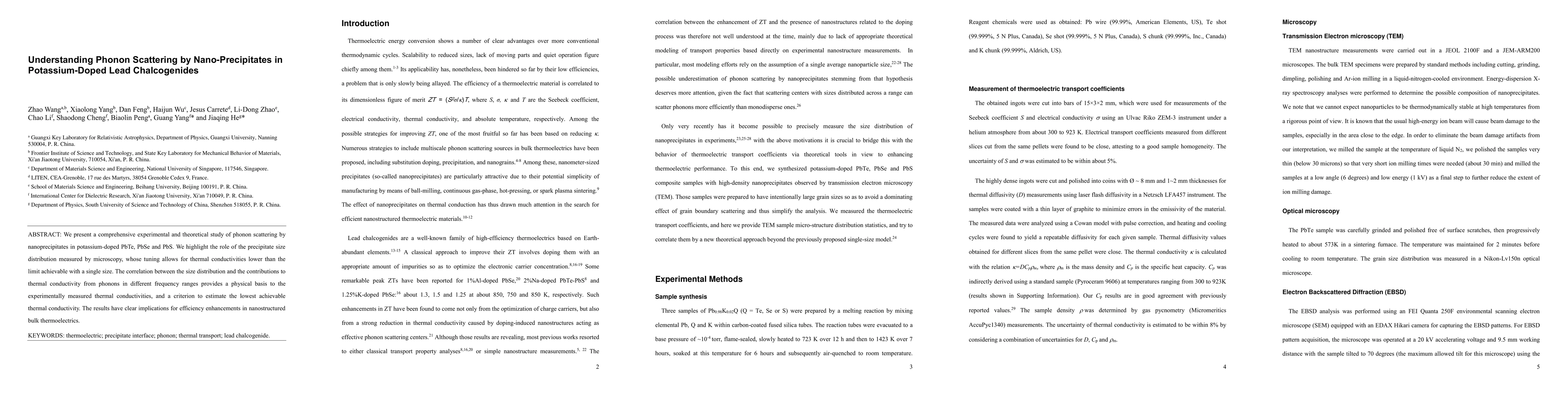 This paper investigates phonon scattering in potassium-doped lead chalcogenides influenced by nanoprecipitates, revealing that tuning precipitate size distribution can achieve lower thermal conductivities. The study correlates size distribution with phonon frequency contributions, providing a basis for estimating minimal thermal conductivity and enhancing thermoelectric efficiency.