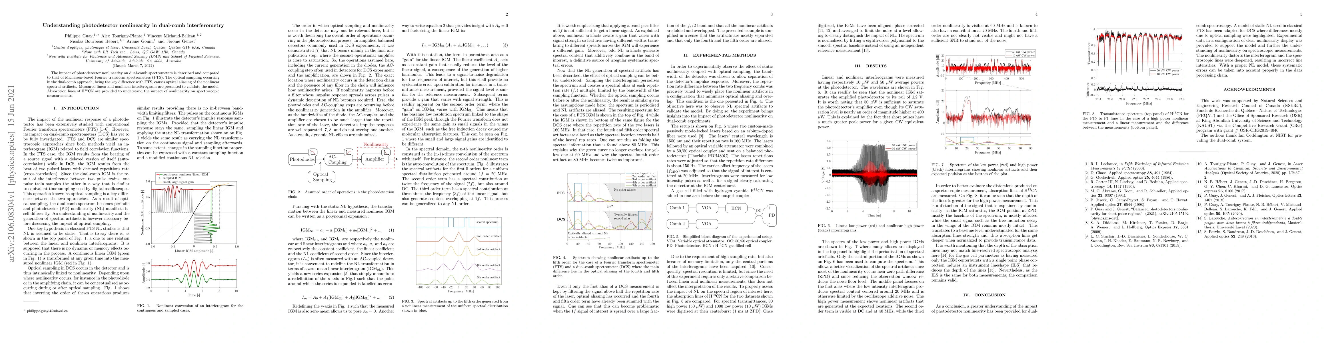 This research examines the effect of photodetector nonlinearity on dual-comb spectrometers, contrasting it with Michelson-based Fourier transform spectrometers (FTS). The study reveals that optical sampling in dual-comb methods leads to optical aliasing of nonlinear spectral artifacts, validated through measured linear and nonlinear interferograms. The impact on spectroscopic measurements, specifically using H13CN absorption lines, is also explored.