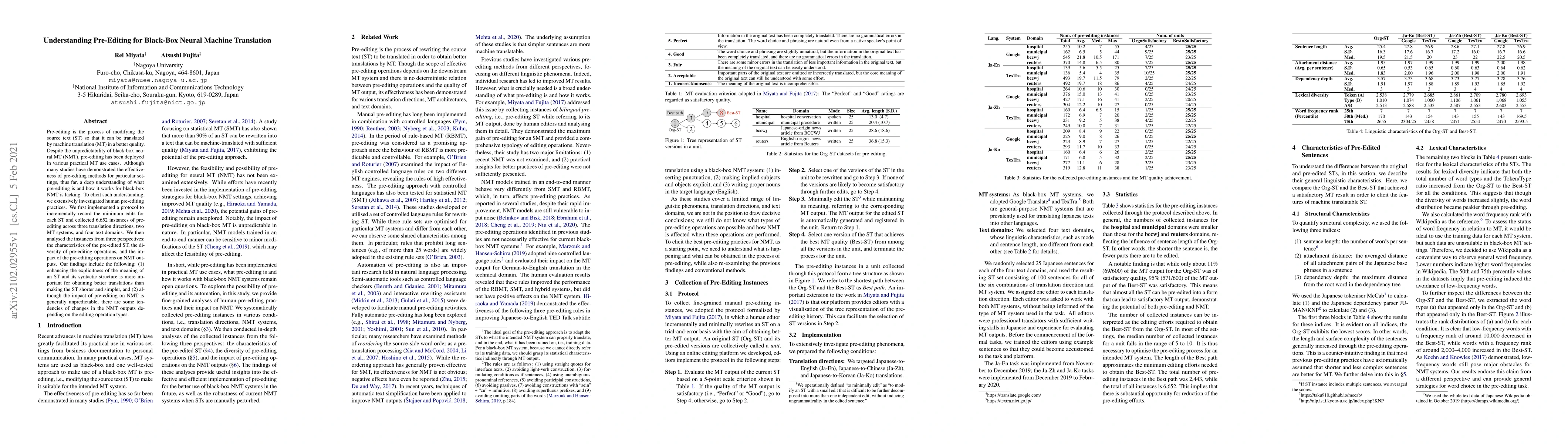 The study implemented a protocol to incrementally record the minimum edits for each source text (ST) across three translation directions, two MT systems (Google and TexTra), and four text domains. Human editors, professional translators with sufficient Japanese writing skills and MT output evaluation experience, performed the pre-editing tasks without knowledge of the MT system type.