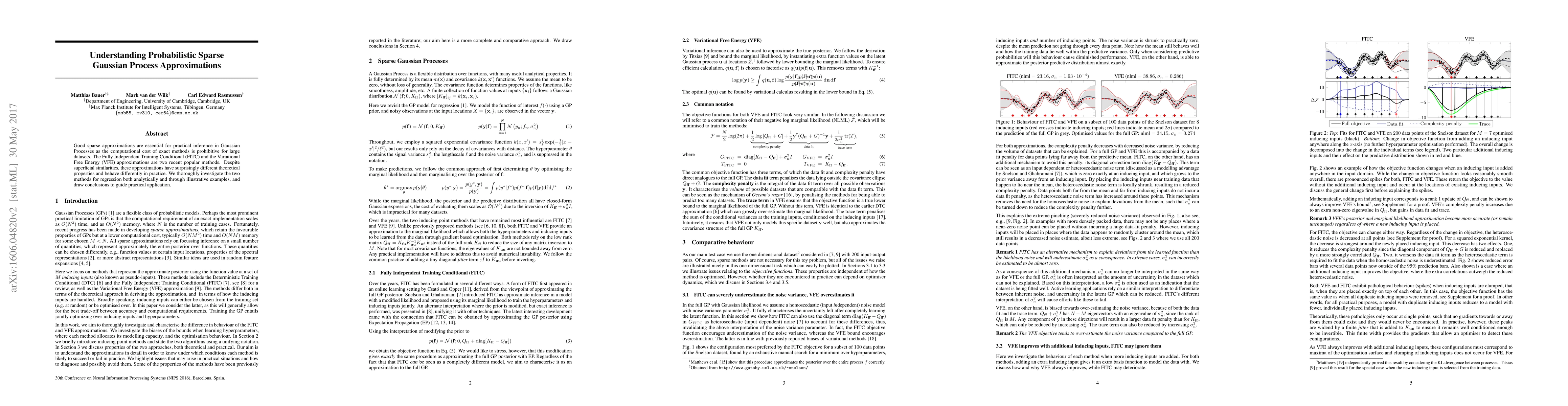 This paper compares the Fully Independent Training Conditional (FITC) and Variational Free Energy (VFE) approximations for sparse Gaussian Processes, analyzing their theoretical properties and practical performance to provide guidance for their application in regression tasks.