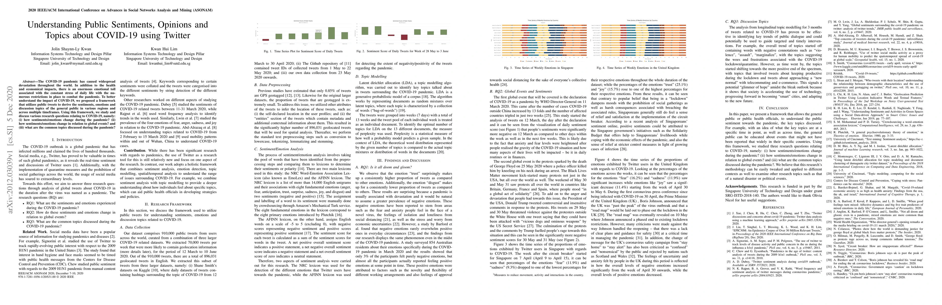 This study proposes a framework using Twitter data to analyze public sentiments, emotions, and topics related to COVID-19 across different regions and time periods, addressing questions about changes in sentiments during the pandemic and in relation to global events, and identifying common discussion topics.