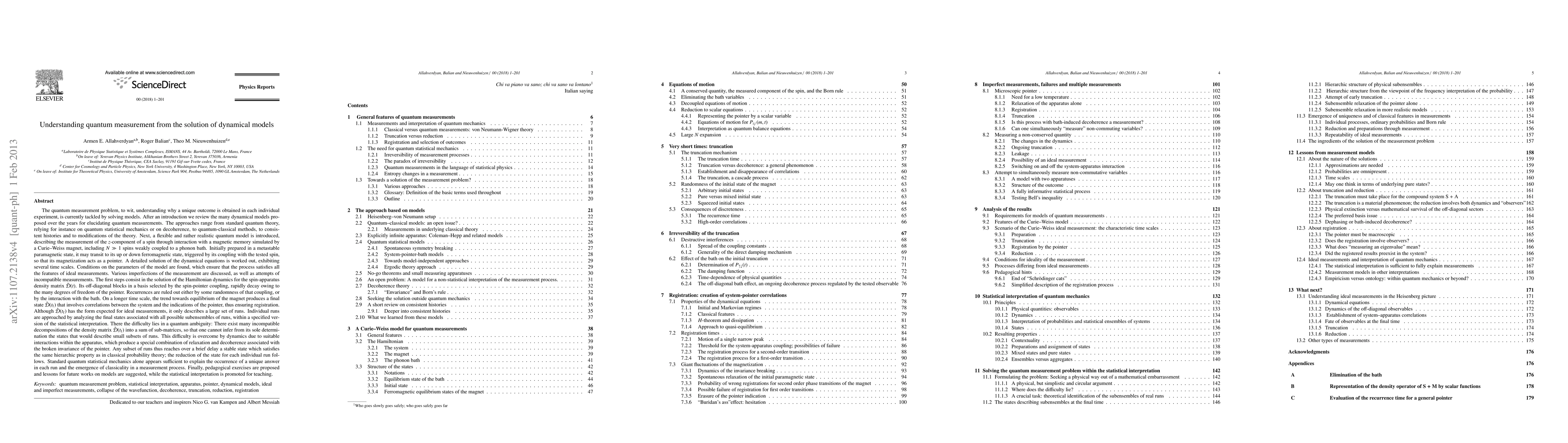 This paper explores the quantum measurement problem by solving a dynamical model of a spin measurement using a Curie-Weiss magnet as a memory. The model demonstrates how interactions lead to a stable state that registers a unique measurement outcome, overcoming quantum ambiguities through suitable apparatus dynamics.
