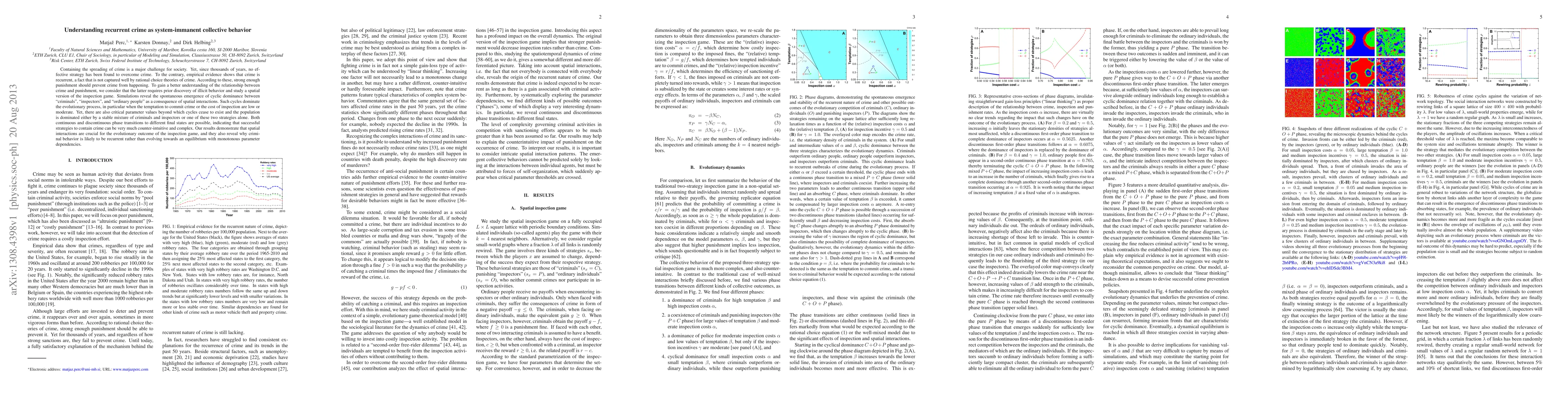 This paper explores recurrent crime through a spatial version of the inspection game, revealing that cyclic dominance and phase transitions in crime dynamics are driven by spatial interactions, challenging the effectiveness of traditional punishment strategies. The study finds that crime's persistence is due to complex, often counter-intuitive evolutionary processes rather than straightforward rational choice models.