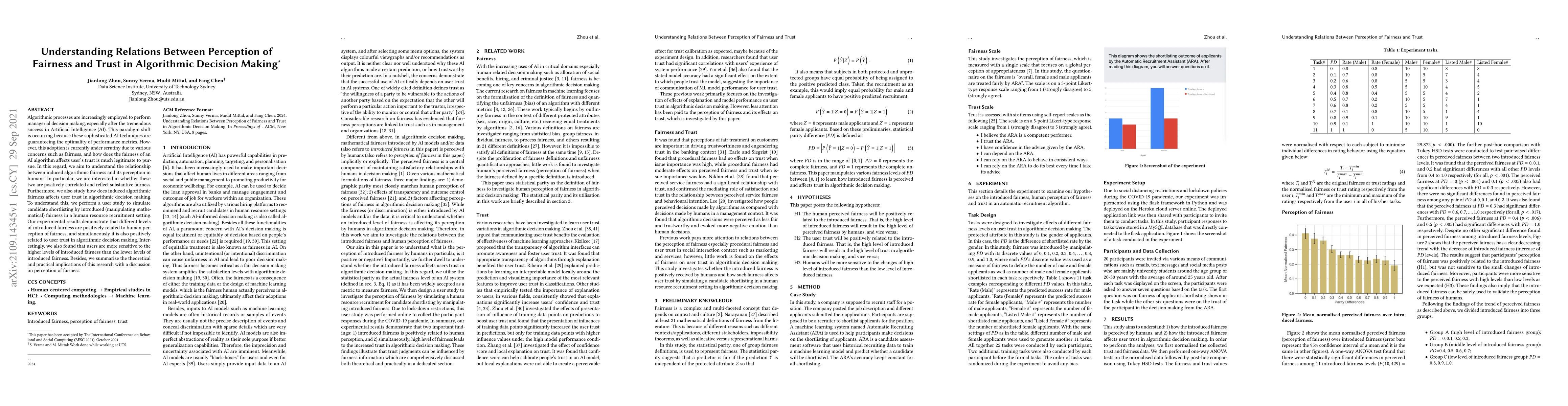 This paper investigates the relationship between algorithmic fairness and user trust in AI-driven decision making, finding that higher perceived fairness correlates with increased trust. Through a user study simulating recruitment processes, the authors demonstrate that manipulated algorithmic fairness positively influences both human perception of fairness and trust in the system.