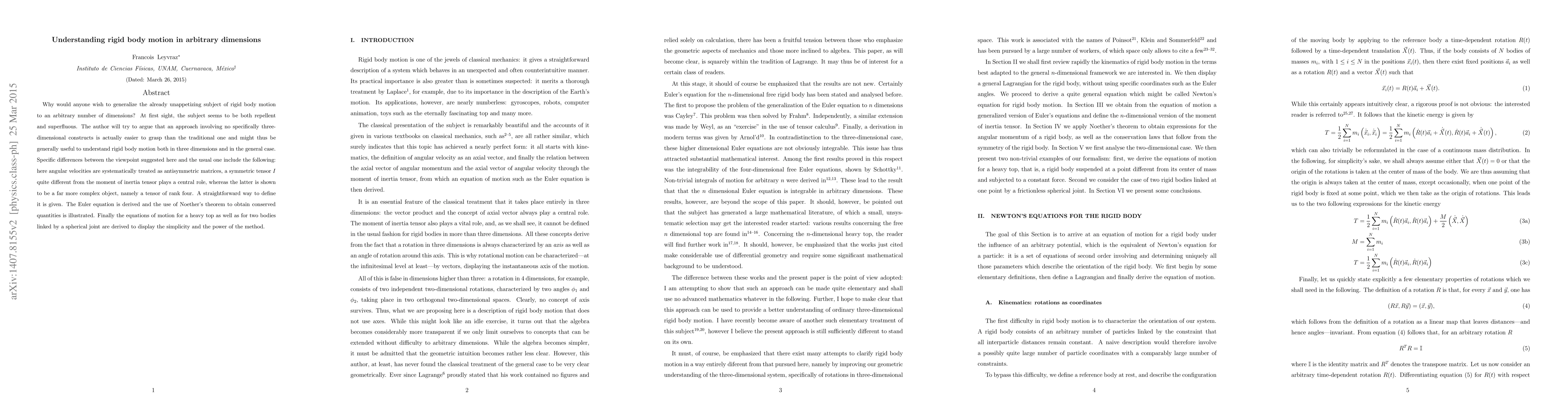 A new approach to understanding rigid body motion simplifies angular velocities and moment of inertia tensors, revealing a more powerful method for deriving equations of motion in arbitrary dimensions.
