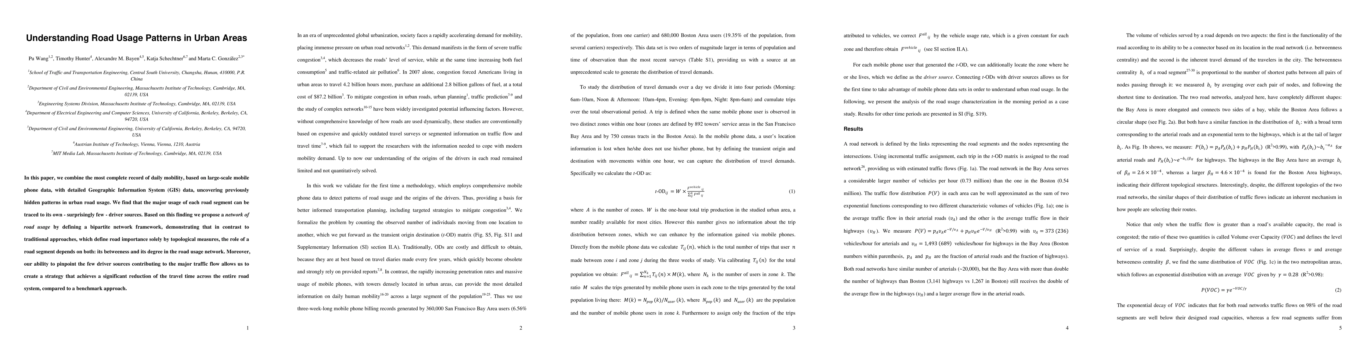In this paper, we combine the most complete record of daily mobility, based on large-scale mobile phone data, with detailed Geographic Information System (GIS) data, uncovering previously hidden patterns in urban road usage. We find that the major usage of each road segment can be traced to its own - surprisingly few - driver sources. Based on this finding we propose a network of road usage by defining a bipartite network framework, demonstrating that in contrast to traditional approaches, which define road importance solely by topological measures, the role of a road segment depends on both: its betweeness and its degree in the road usage network. Moreover, our ability to pinpoint the few driver sources contributing to the major traffic flow allows us to create a strategy that achieves a significant reduction of the travel time across the entire road system, compared to a benchmark approach.