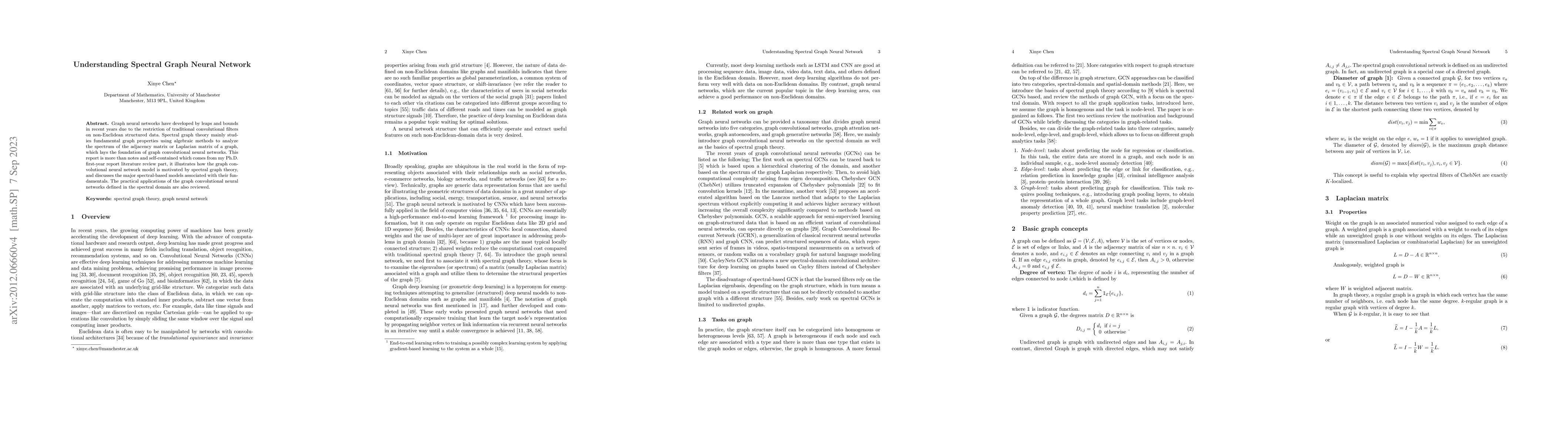 This paper reviews the development of spectral graph neural networks, emphasizing how they are motivated by spectral graph theory, which uses algebraic methods to analyze graph properties. It discusses major spectral-based models and their fundamentals, along with practical applications of graph convolutional neural networks in the spectral domain.