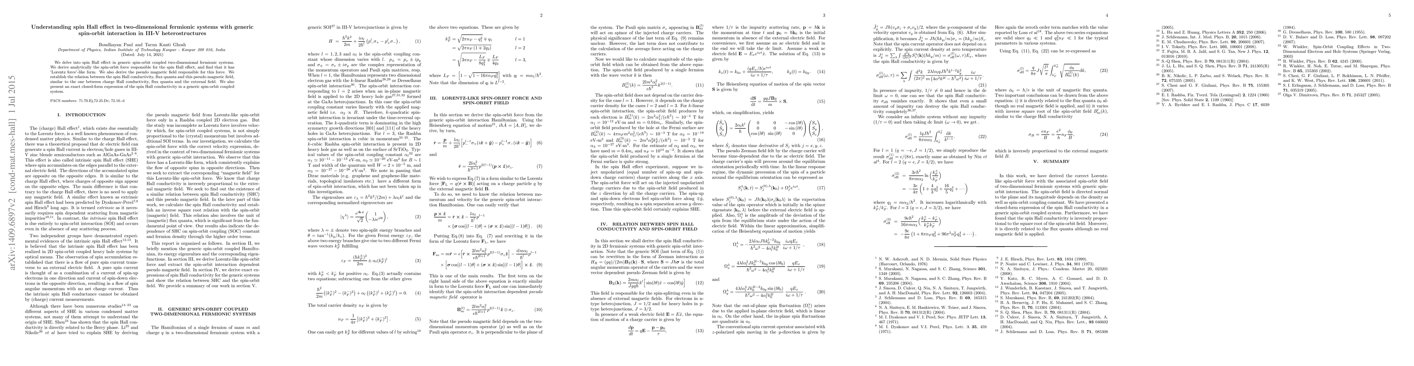 This paper analytically derives the spin-orbit force and pseudo magnetic field responsible for the spin Hall effect in two-dimensional fermionic systems with generic spin-orbit interactions. It establishes a relationship between spin Hall conductivity, flux quanta, and the pseudo magnetic field, presenting an exact closed-form expression for the spin Hall conductivity.