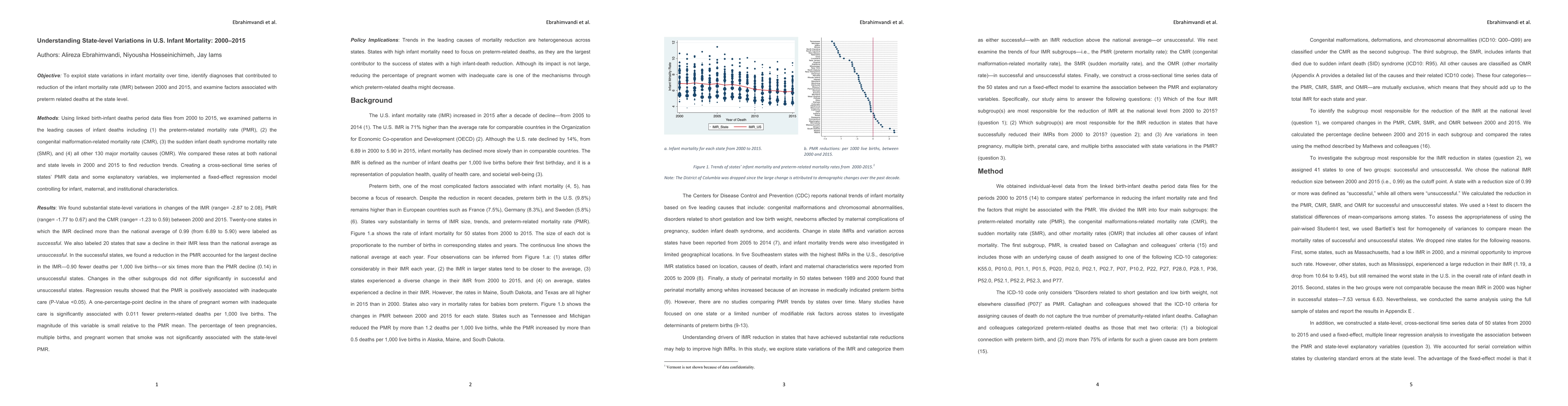 US infant mortality rates varied significantly between states from 2000 to 2015, with some states experiencing declines of up to 6.89 deaths per 1,000 live births. These declines were largely attributed to reductions in preterm-related mortality rates.