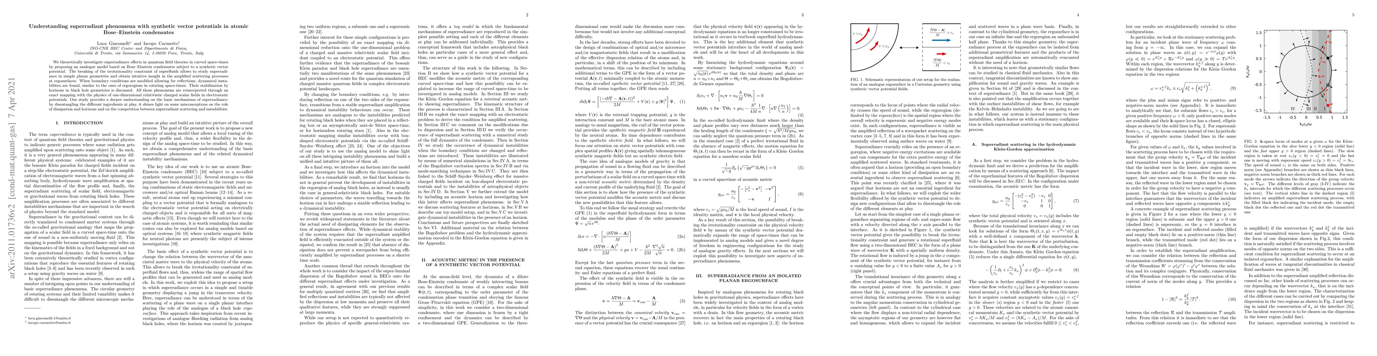 This paper explores superradiance in Bose-Einstein condensates using synthetic vector potentials, revealing dynamical instabilities akin to ergoregions in rotating space-times. It clarifies misconceptions about the roles of dissipation and horizons in superradiant scattering processes through an exact mapping to relativistic charged scalar fields.