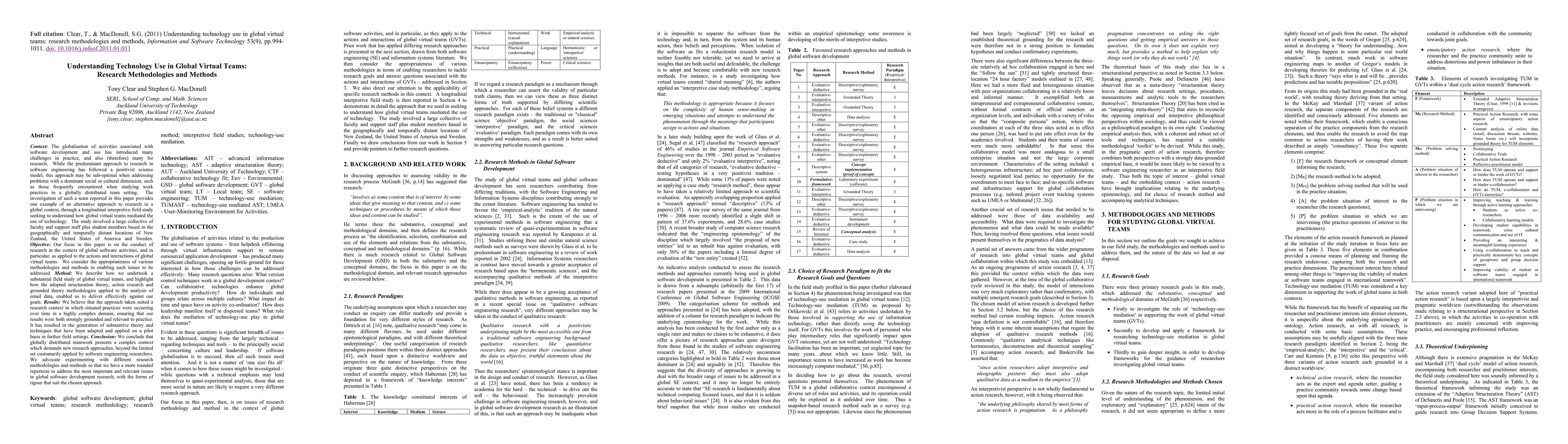 This paper presents a longitudinal field study using structuration theory to understand global virtual teams' technology use, demonstrating the need for diverse research methods in complex global software development contexts, yielding applicable theory and techniques.
