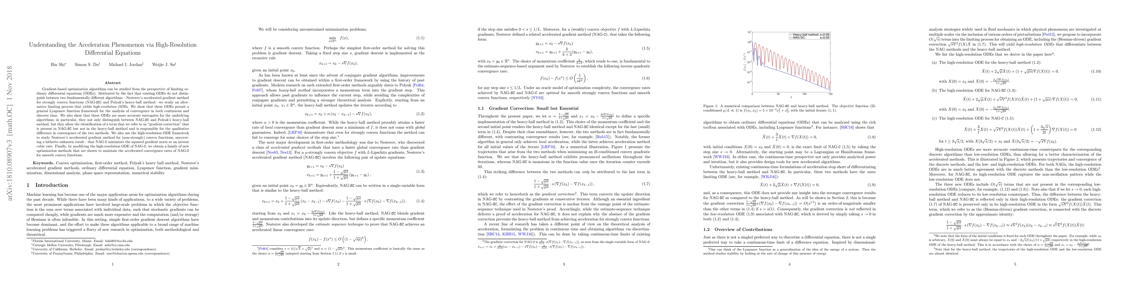 This paper proposes high-resolution differential equations to better understand gradient-based optimization algorithms, distinguishing Nesterov's accelerated gradient method from Polyak's heavy-ball method. It reveals a "gradient correction" term in Nesterov's method and uncovers an inverse cubic rate of convergence for NAG-C, leading to the development of new optimization methods with accelerated convergence.