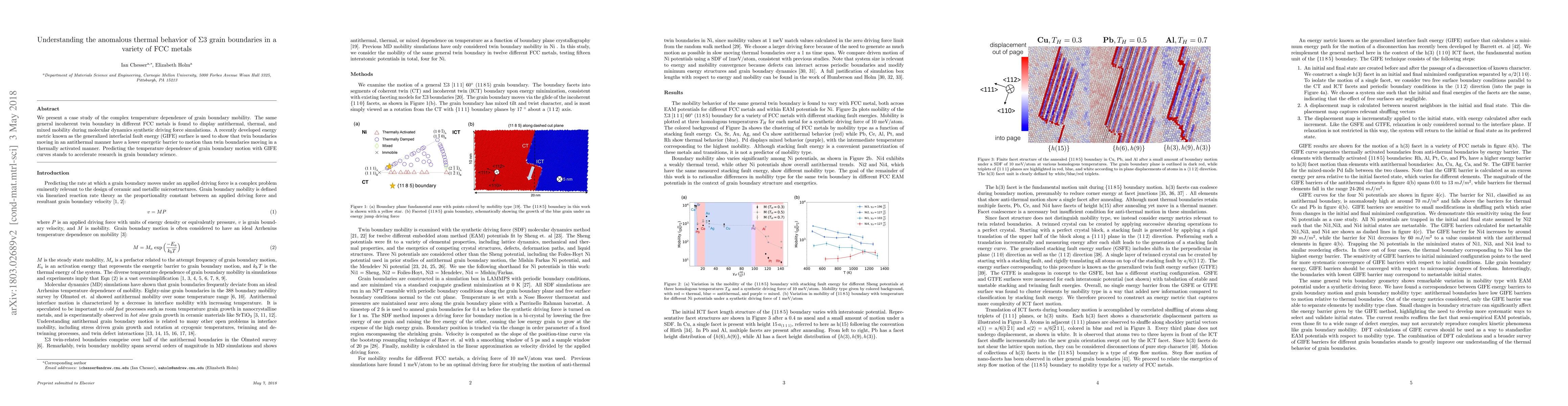 This study investigates the unusual thermal behavior of sigma 3 grain boundaries in FCC metals, revealing antithermal, thermal, and mixed mobility through molecular dynamics simulations. The generalized interfacial fault energy (GIFE) surface explains lower energetic barriers for antithermal mobility, potentially advancing grain boundary science research.