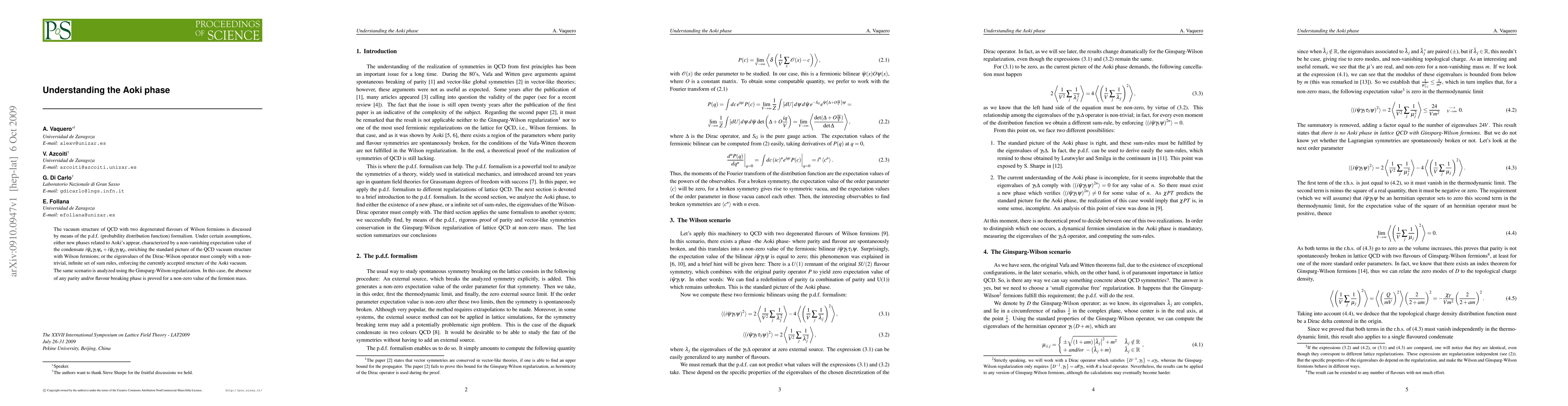 The vacuum structure of QCD with two degenerated flavours of Wilson fermions is discussed by means of the p.d.f. (probability distribution function) formalism. Under certain assumptions, either new phases related to Aoki's appear, characterized by a non-vanishing expectation value of the condensate $i\bar\psi_u\gamma_5\psi_u + i\bar\psi_d\gamma_5\psi_d$, enriching the standard picture of the QCD vacuum structure with Wilson fermions; or the eigenvalues of the Dirac-Wilson operator must comply with a non-trivial, infinite set of sum rules, enforcing the currently accepted structure of the Aoki vacuum. The same scenario is analyzed using the Ginsparg-Wilson regularization. In this case, the absence of any parity and/or flavour breaking phase is proved for a non-zero value of the fermion mass.